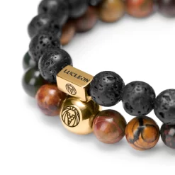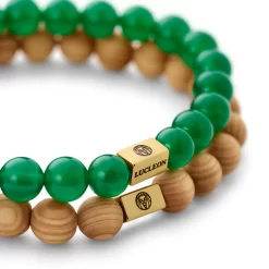 Green Natural Stone & Black Lava Rock & Leather Cord Bracelet Set