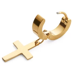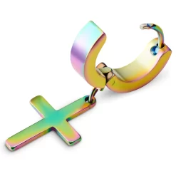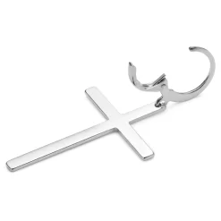 Sentio | Silver-Tone Stainless Steel Hanging Cross Hoop Earring