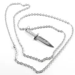 Silver-Tone Stainless Steel Hollow Cross Cable Chain Necklace