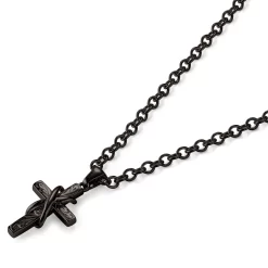 Black Stainless Steel With Hollow Cross Cable Chain Necklace