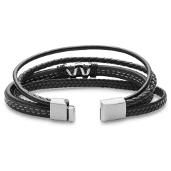 Silver-Tone & Black Stainless Steel Revolving Cross Cable Chain Necklace