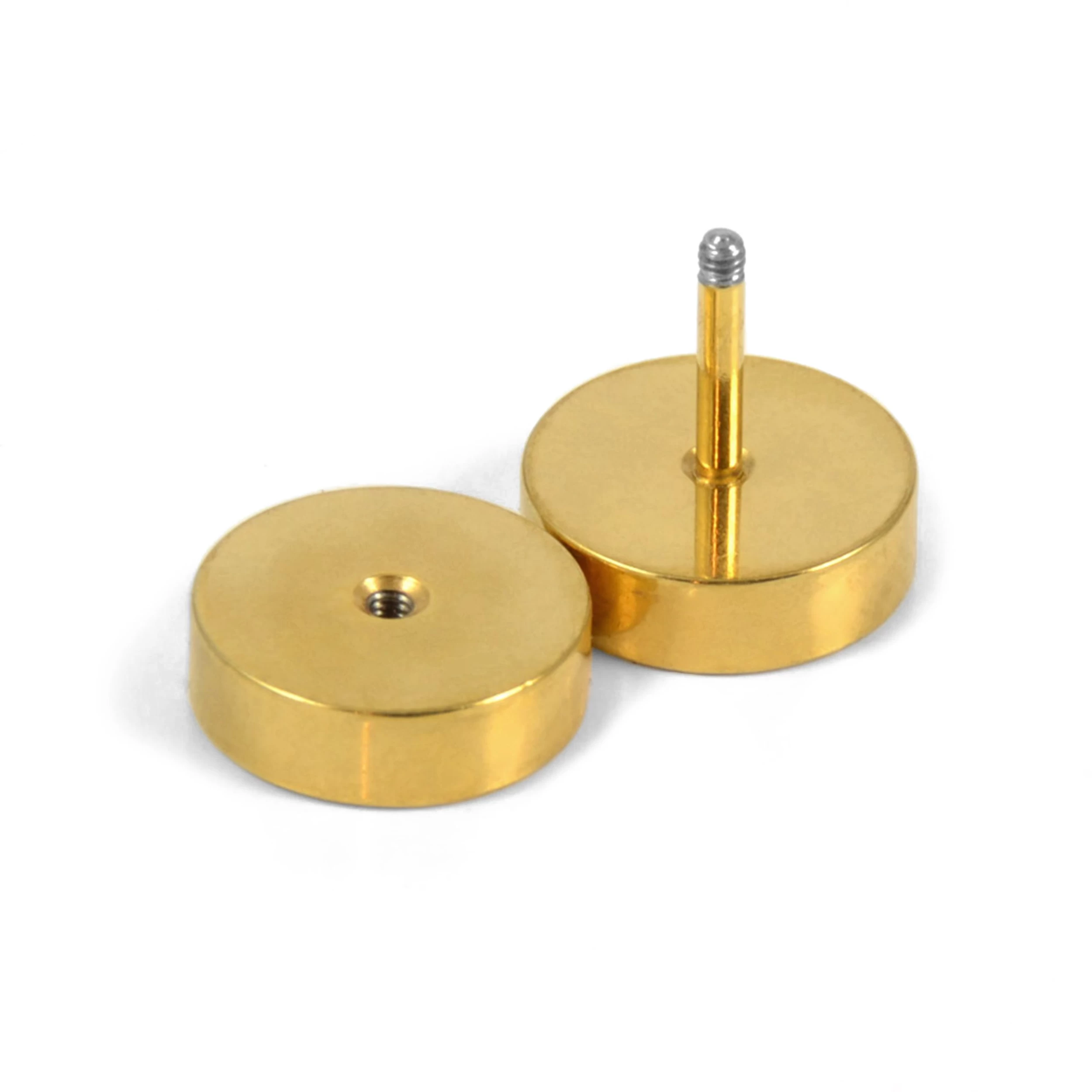 Perfect for a standard piercing, this gold-toned stud earring comes in a fake plug style. Features a simple screw mechanism to hold it in place all day long.