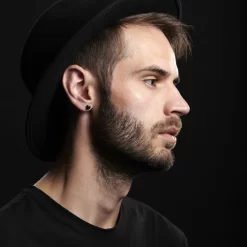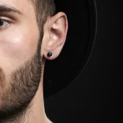 Gorgeous black on black 6mm cubic zirconia and steel stud. Perfect for the edgy gentleman.