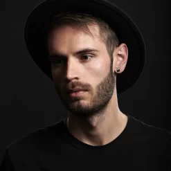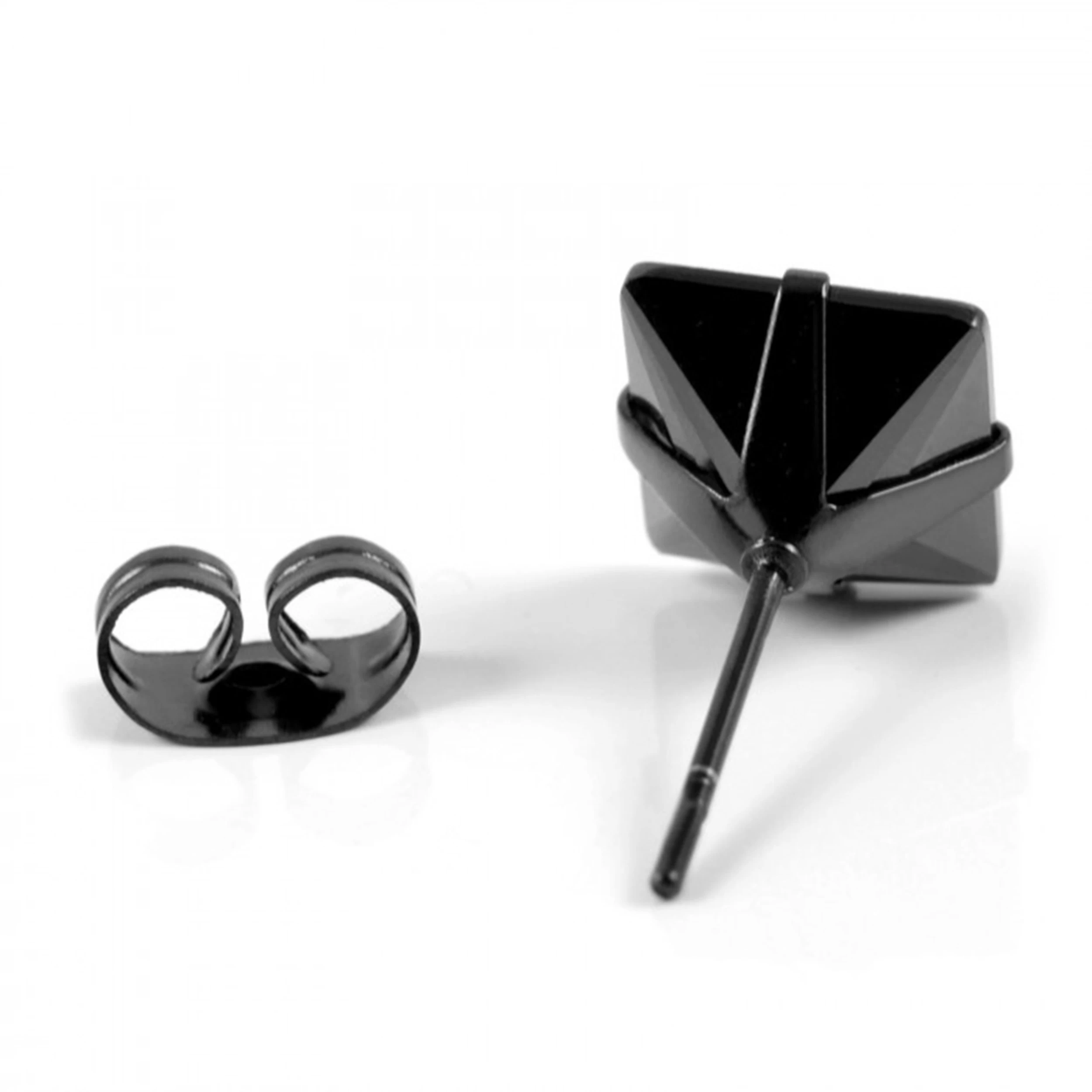 This bold earring for men features a modern black on black design. Crafted with black steel and quartz.