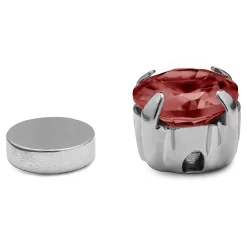 A classic round red cubic zirconia sits in a surgical-grade stainless steel setting. Stays securely on your earlobe (or wherever else you decide to put it) thanks to a strong magnetic backplate.