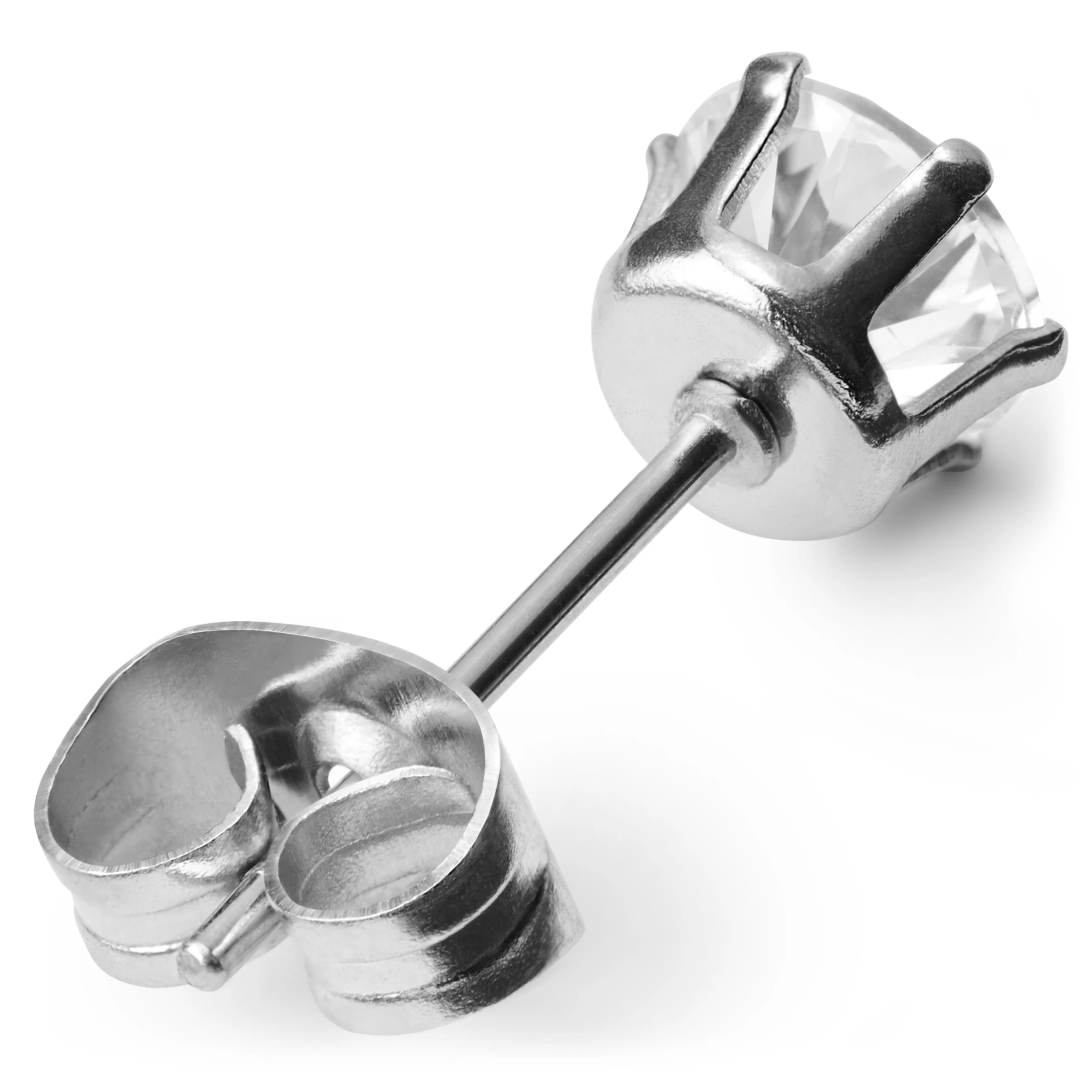 This stud earring is made from rust- and tarnish-free stainless steel with a sparkling cubic zirconia stone. Lightweight and comfortable for everyday wear.