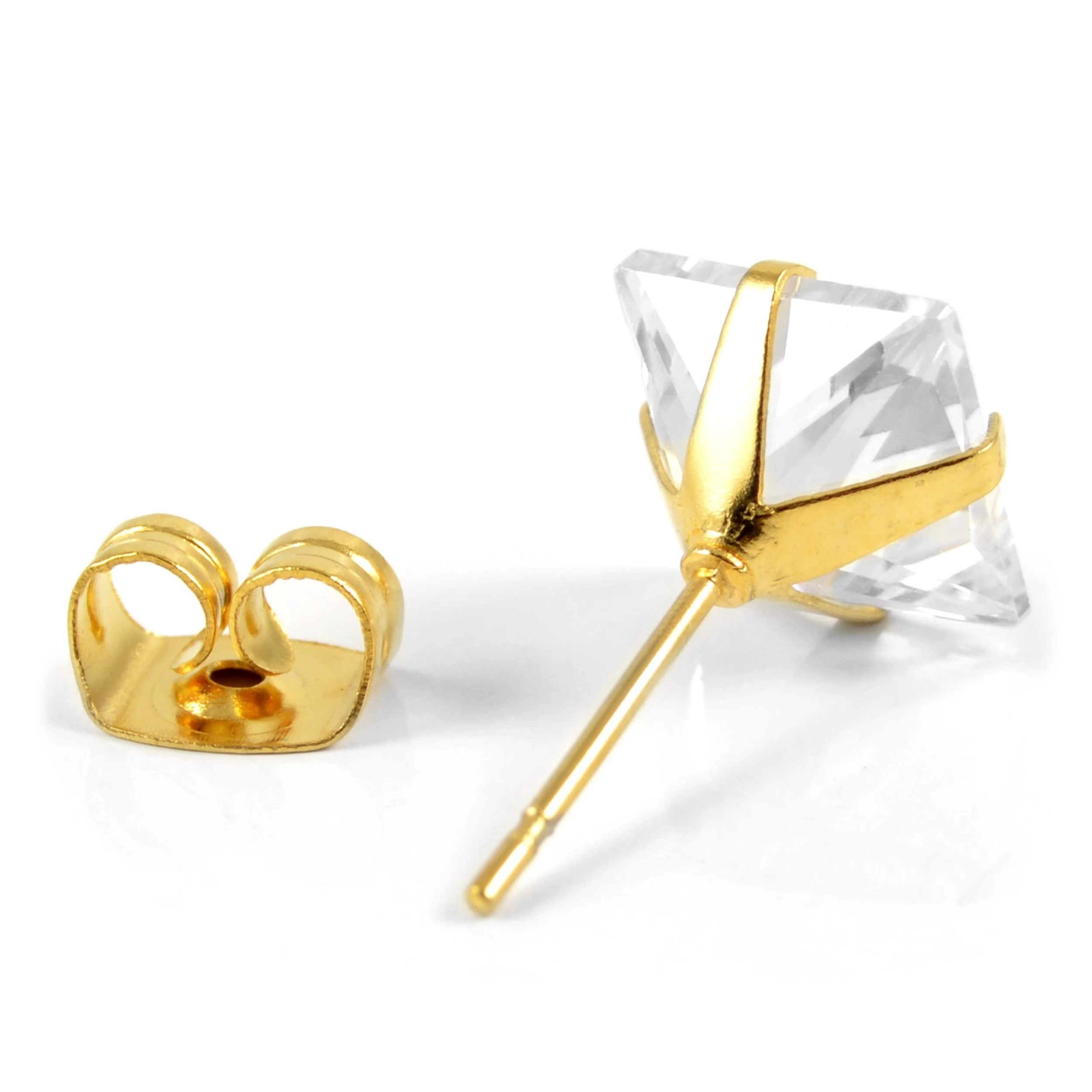This elegant stud features a square, sparkling cubic zirconia stone set in gold-toned steel.