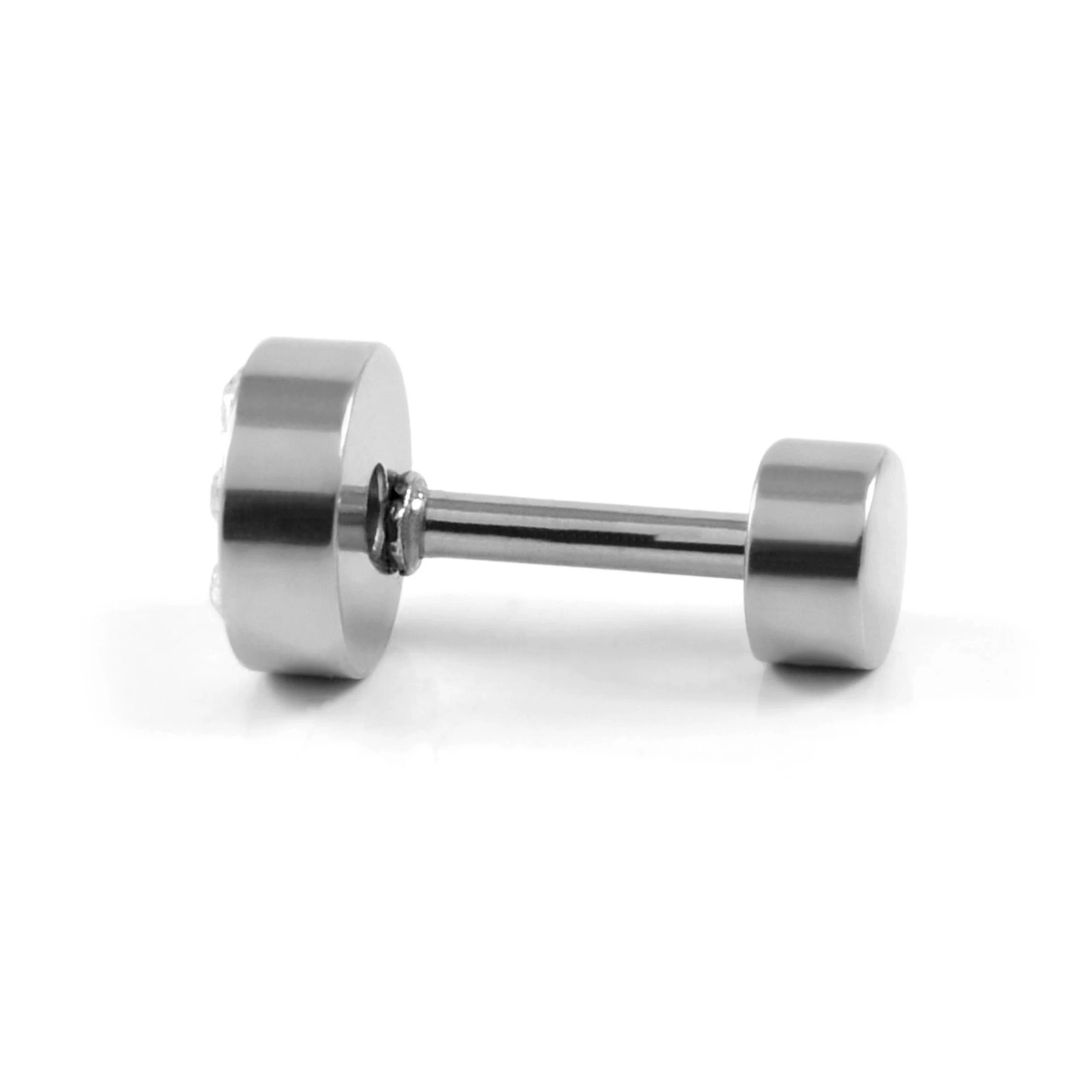 This round steel earring features 7 clear cubic zirconia stones. Screws securely on and off.