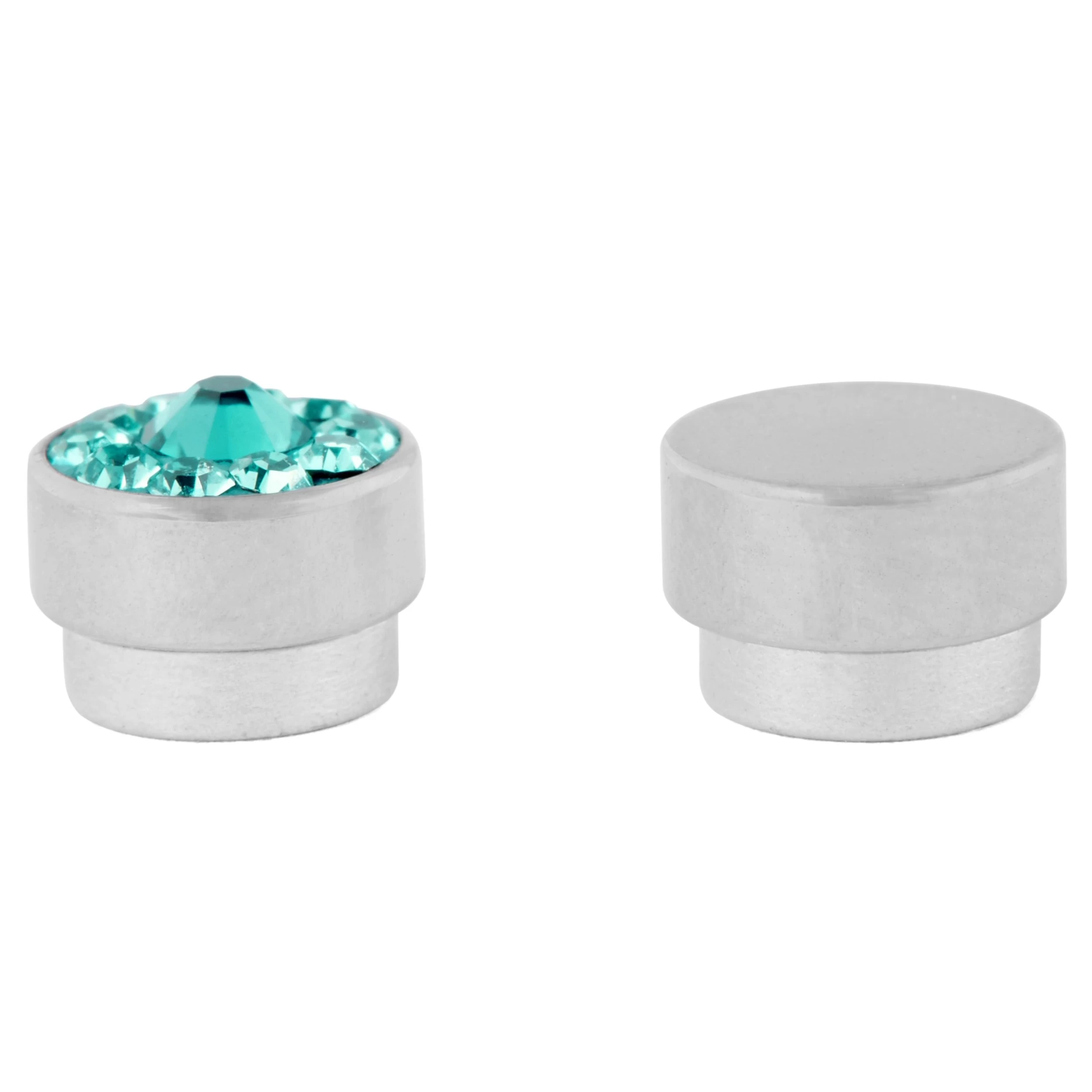 Add a little sparkle to your life with this neat blue crystal earring for men. Attaches to your earlobe thanks to a built-in magnet. Nickel-free 316L surgical steel setting. Price listed is for one earring.
