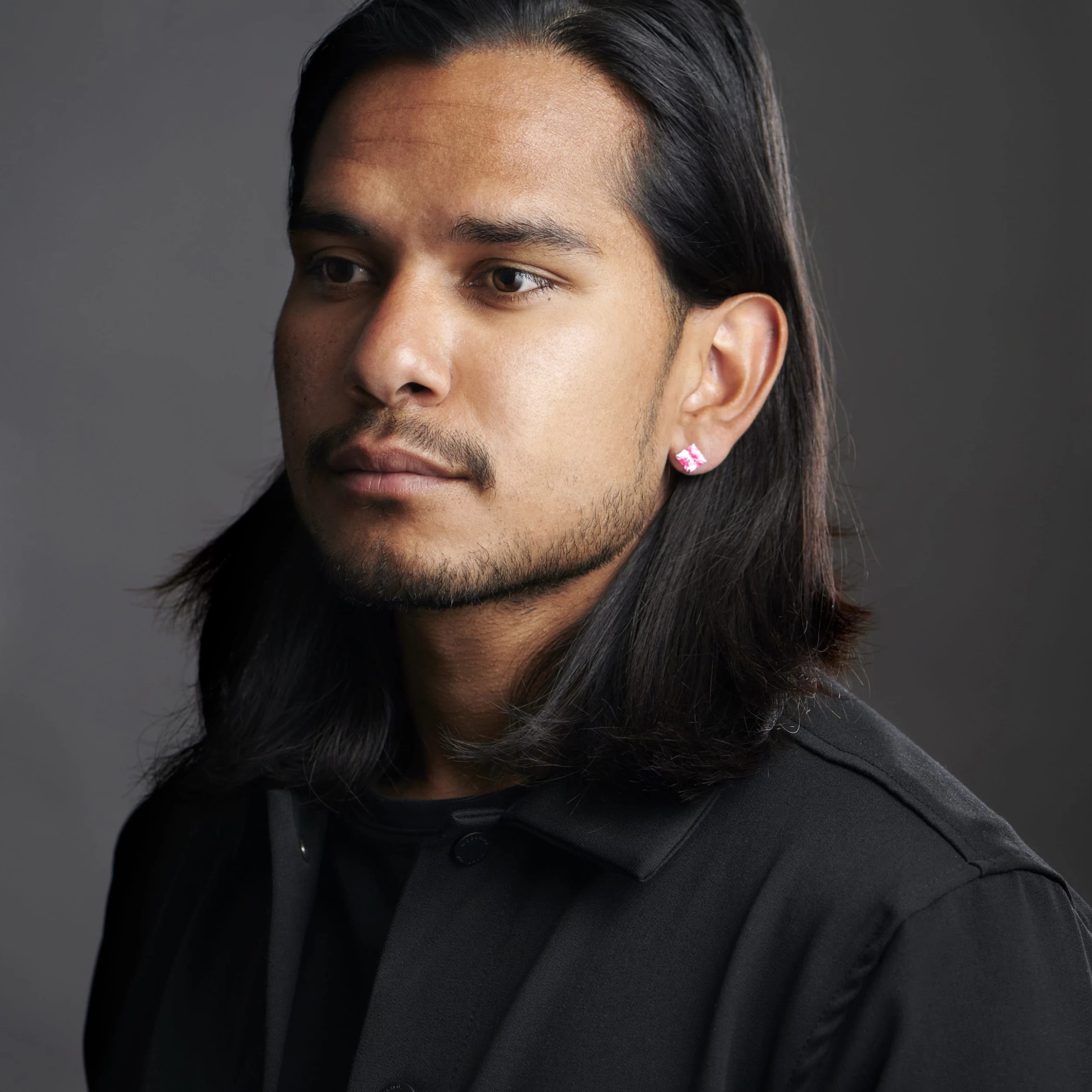 A sharp looking stud that features a square pink cubic zirconia stone. The stone is perfectly-sized to grab the attention of those around you.