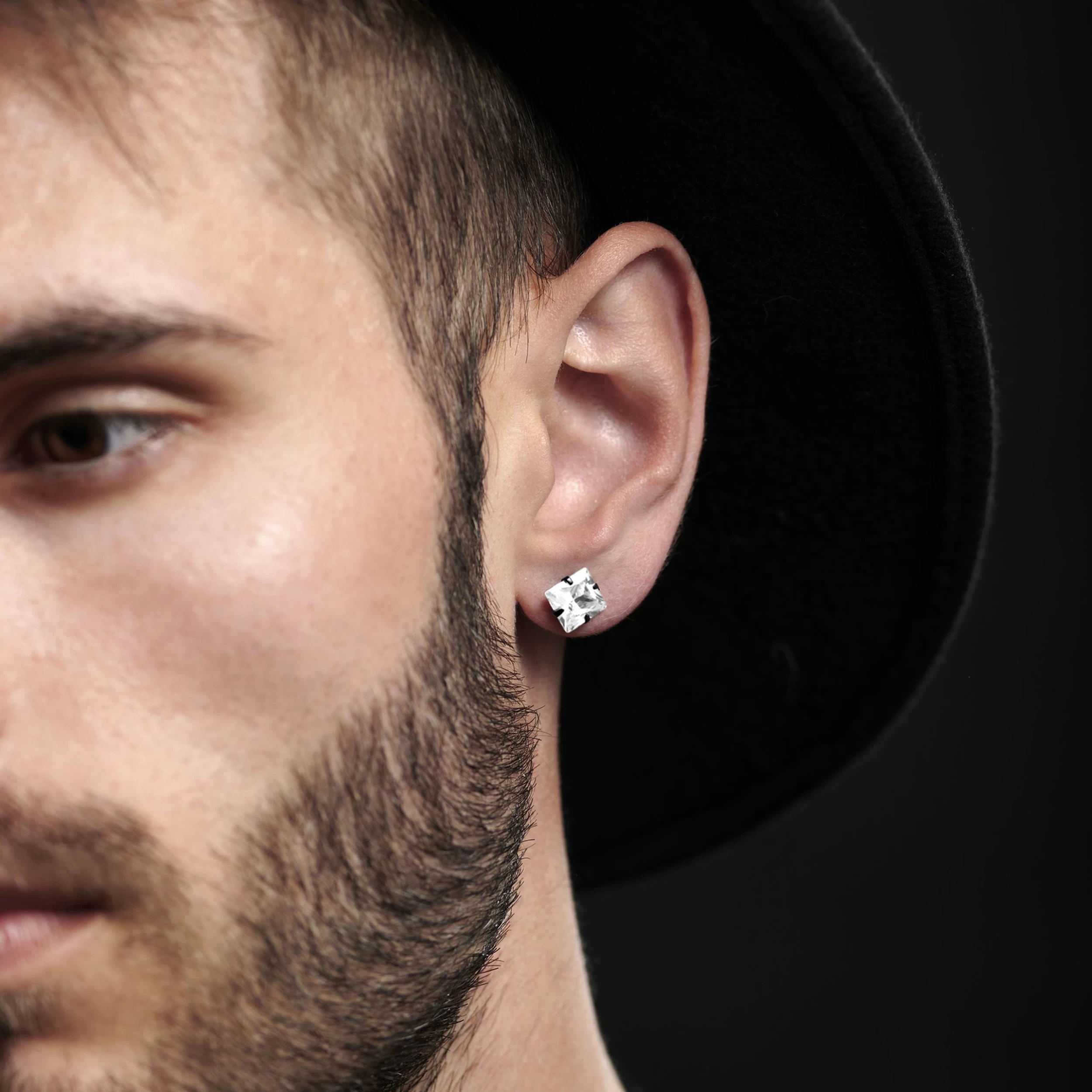 Matte black stainless steel and a stunning clear cubic zirconia stone contrast in this brilliant earring for men. Elegant and subtle, perfect for daily wear.