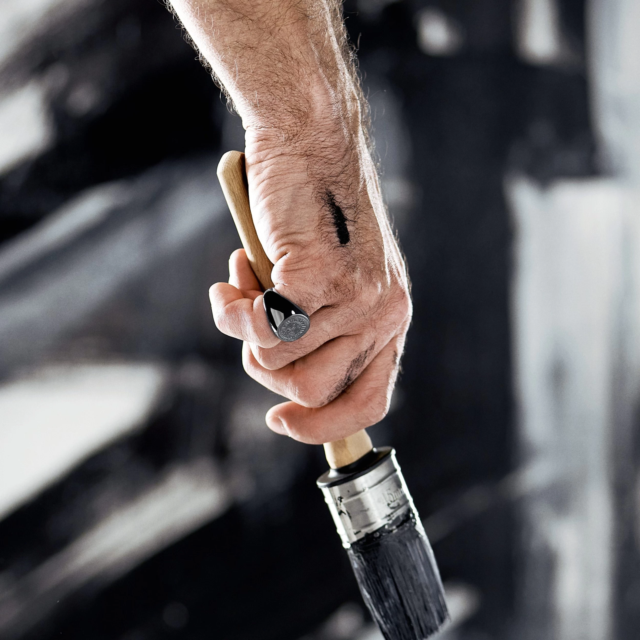 Aras | Black Stainless Steel Raven Penny Pinky Signet Ring