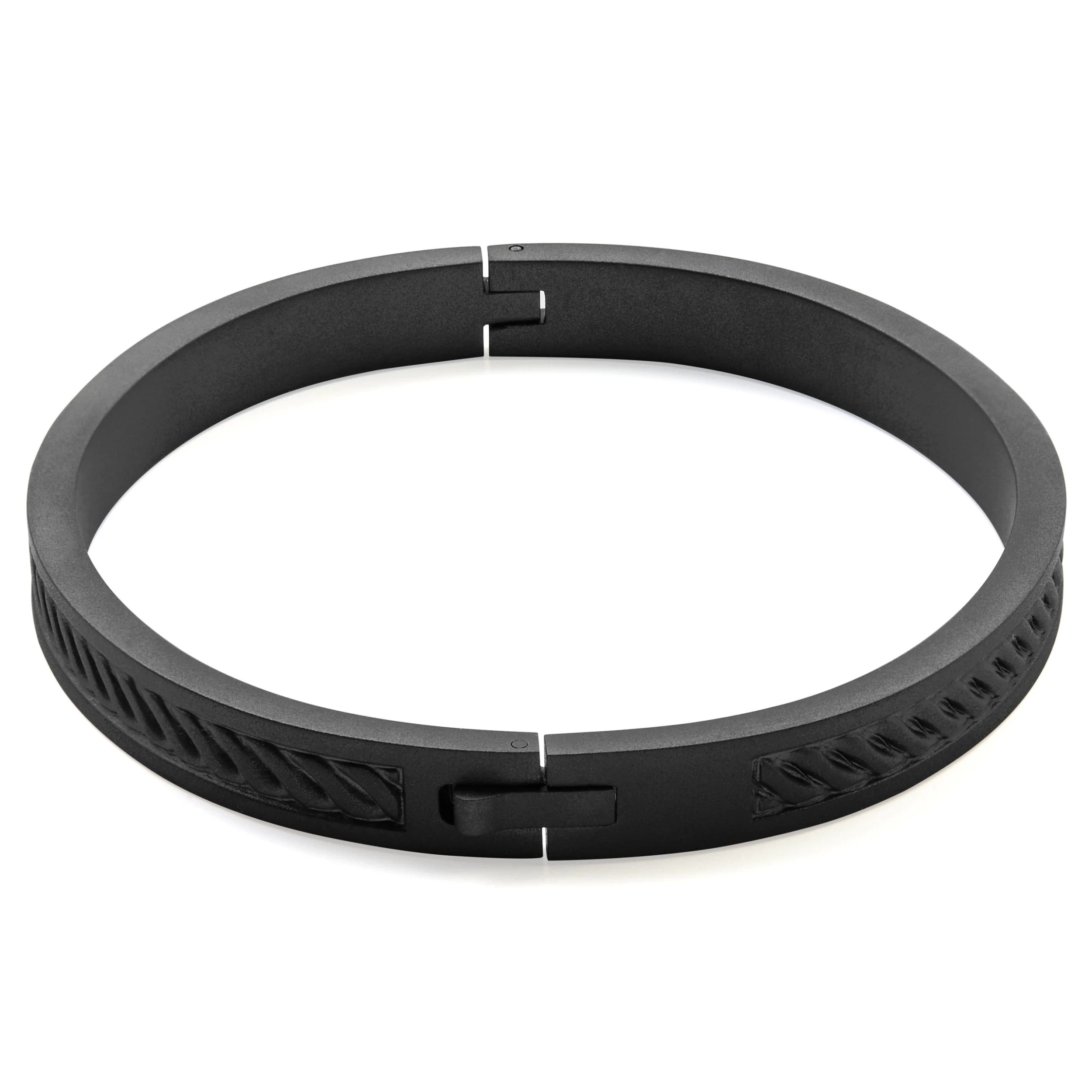Arie | Black Stainless Steel Rope Texture Bangle Bracelet