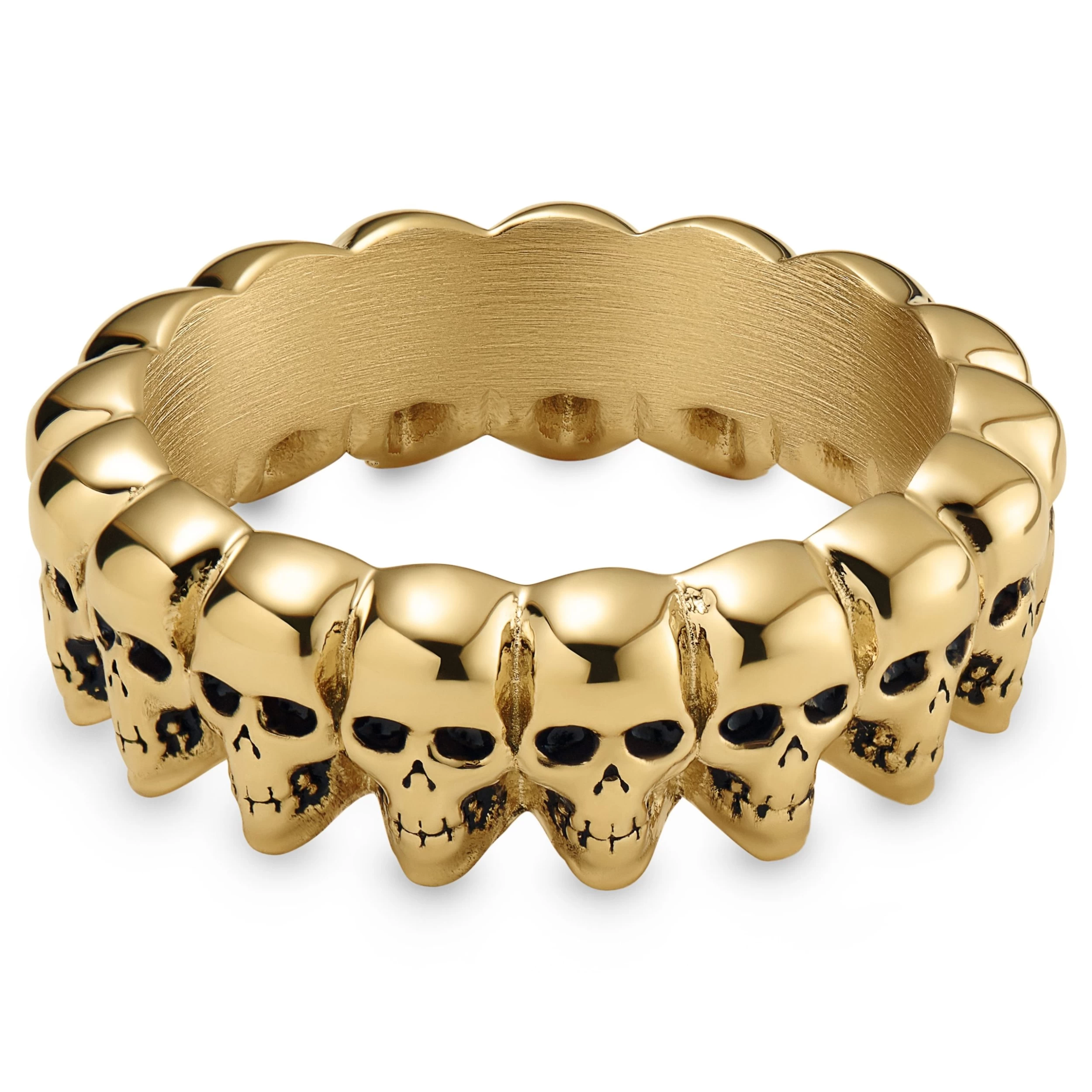 Aspero | 1/3″ (8 Mm) Gold-tone Stainless Steel Skulls Ring