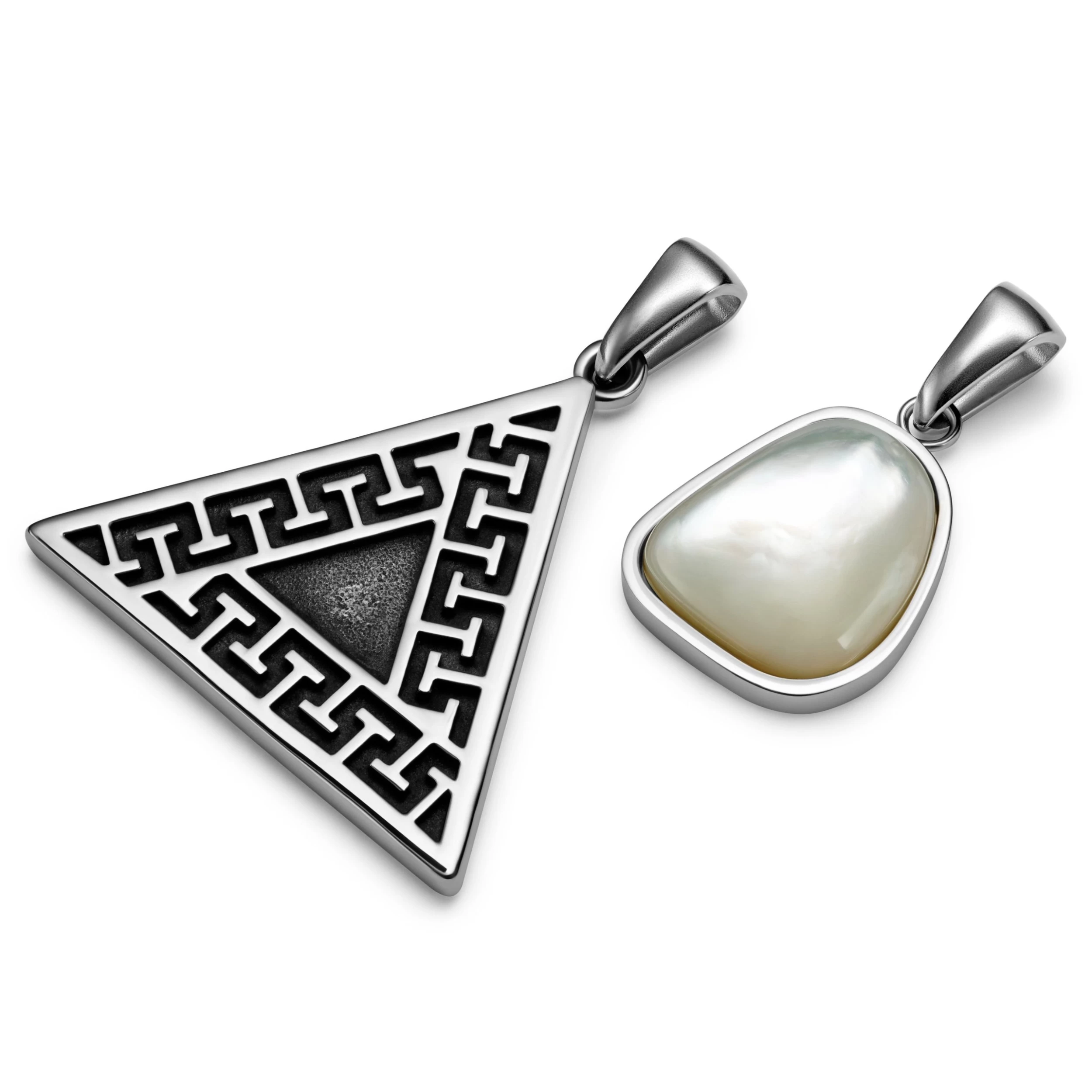 This men’s necklace pendant set gives a striking contrast between nature and classical architecture.