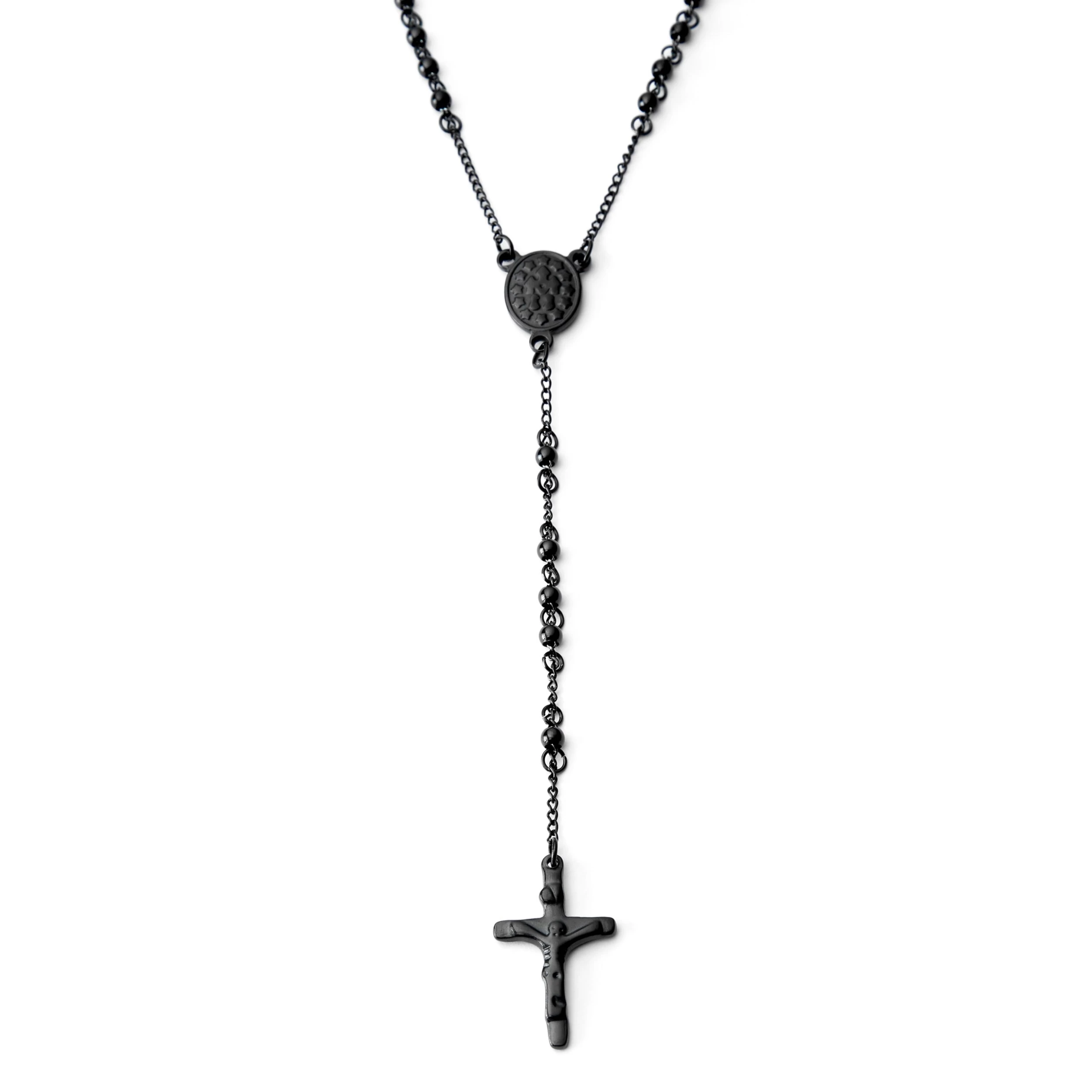 Black Rosary With Our Lady Of Guadalupe & Cross Beads Necklace
