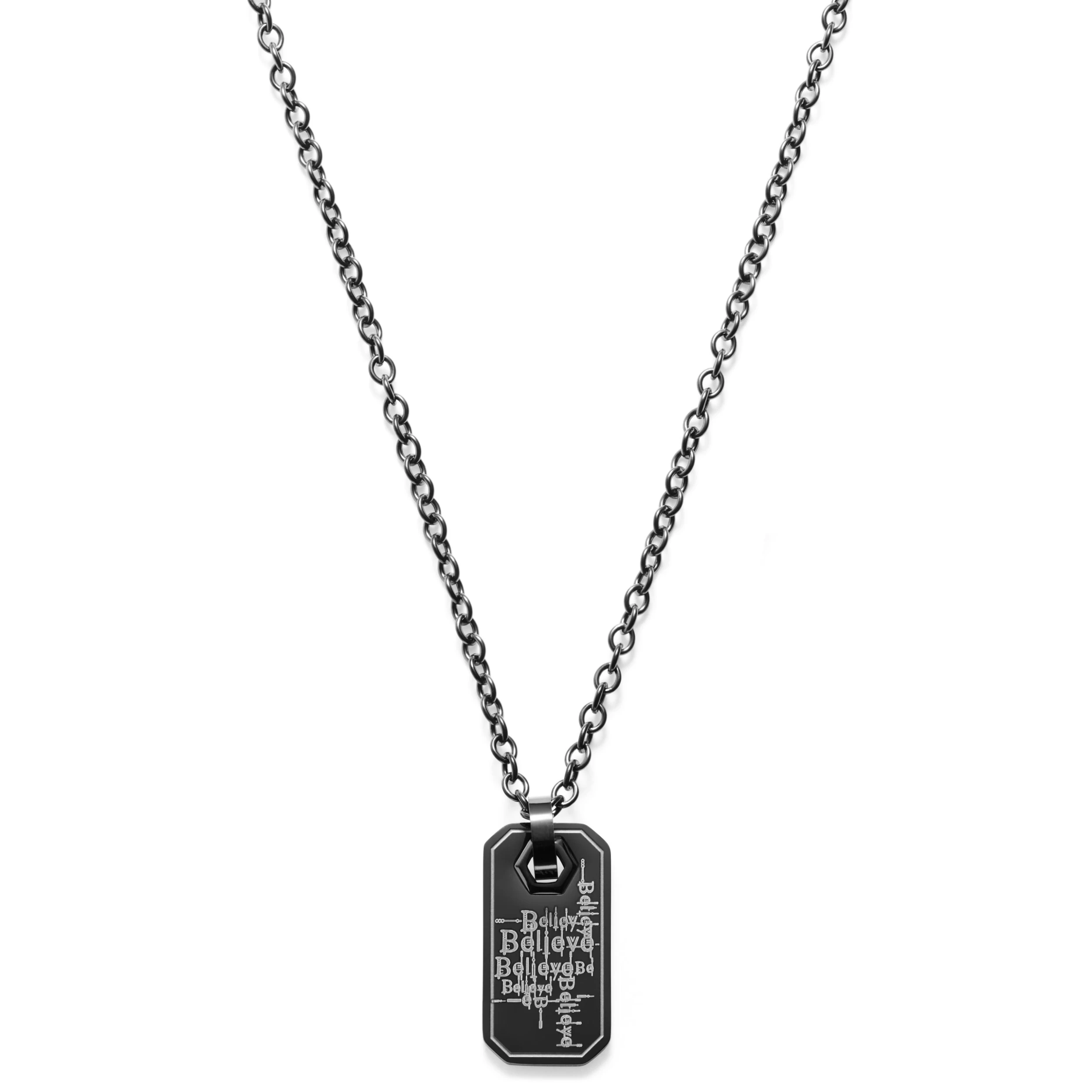 Black Stainless Steel Believe Dog Tag Cable Chain Necklace