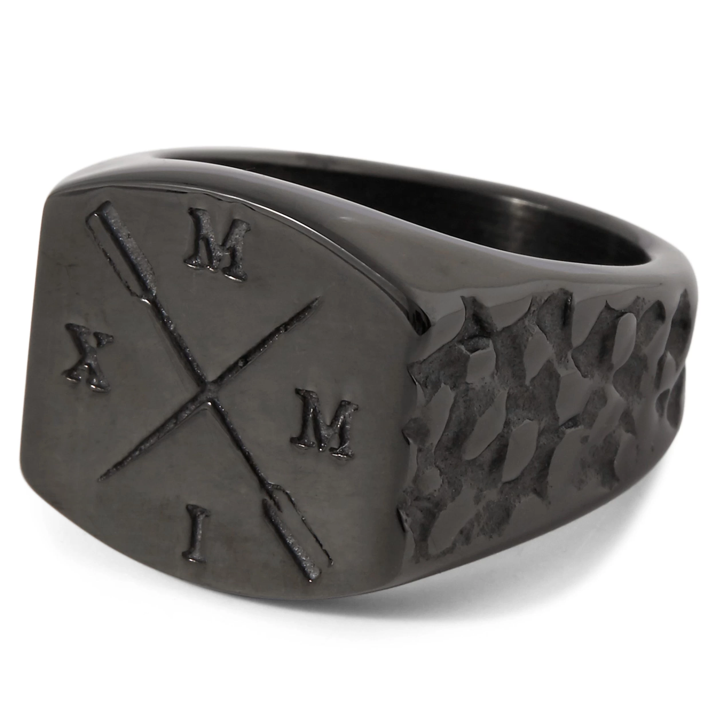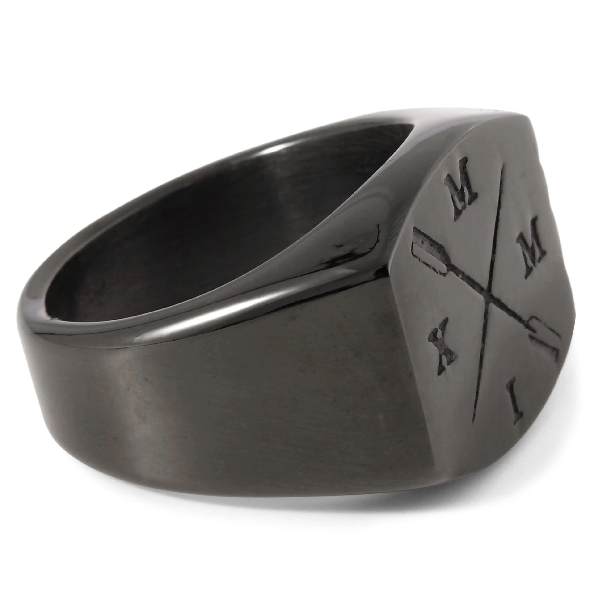 Black Stainless Steel Crossed Oars Symbol Signet Ring