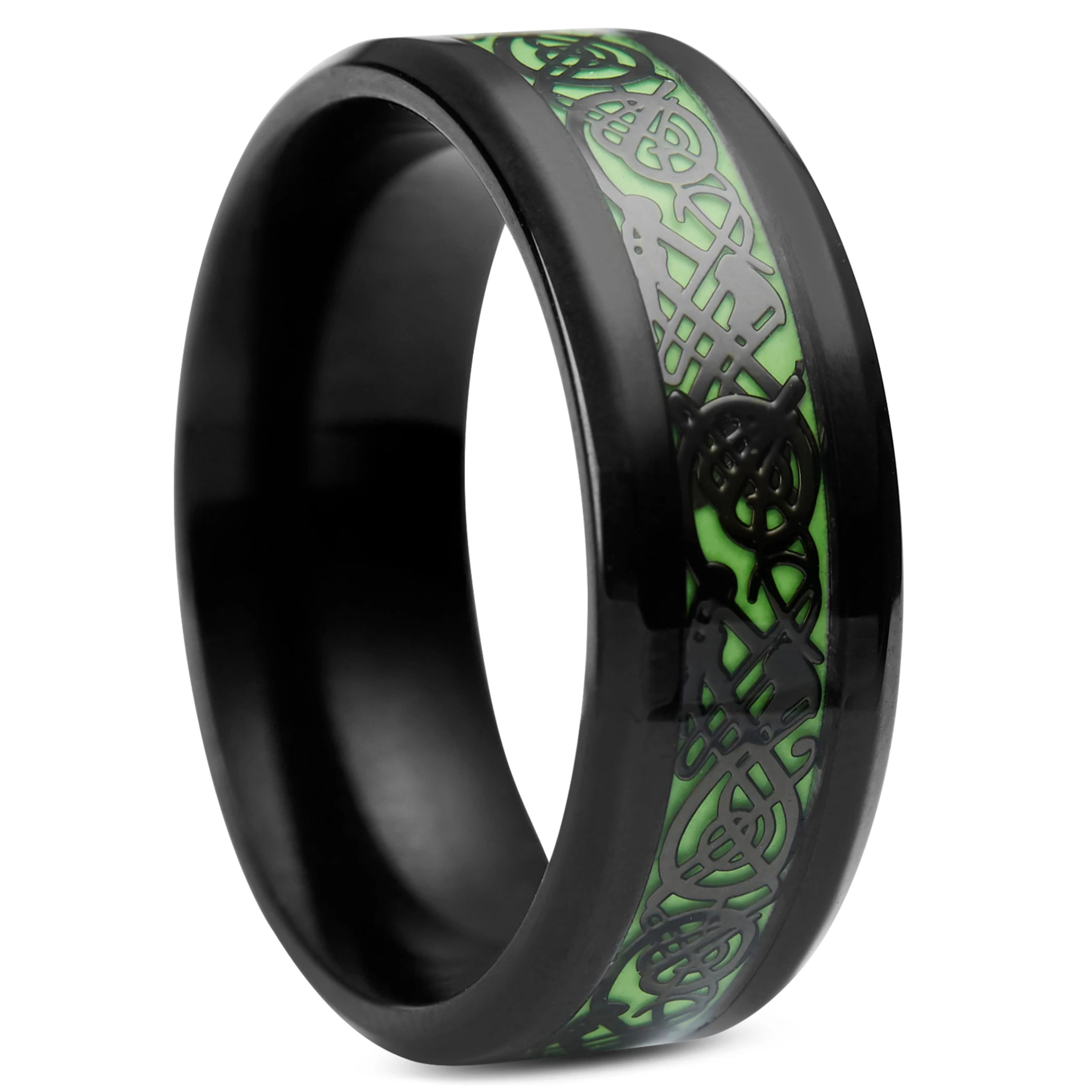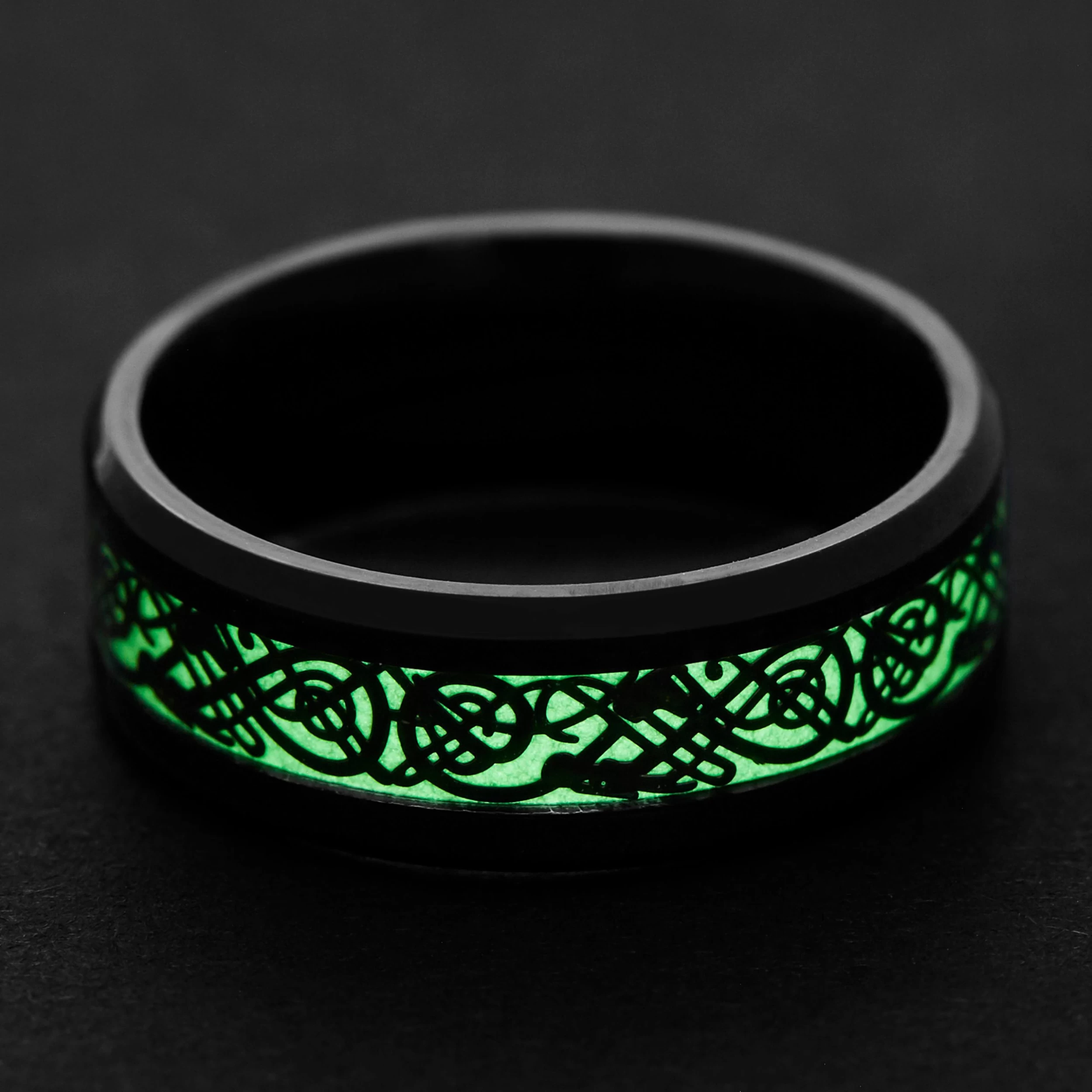 Black Stainless Steel Glow-In-The-Dark Celtic Dragon Pattern Ring