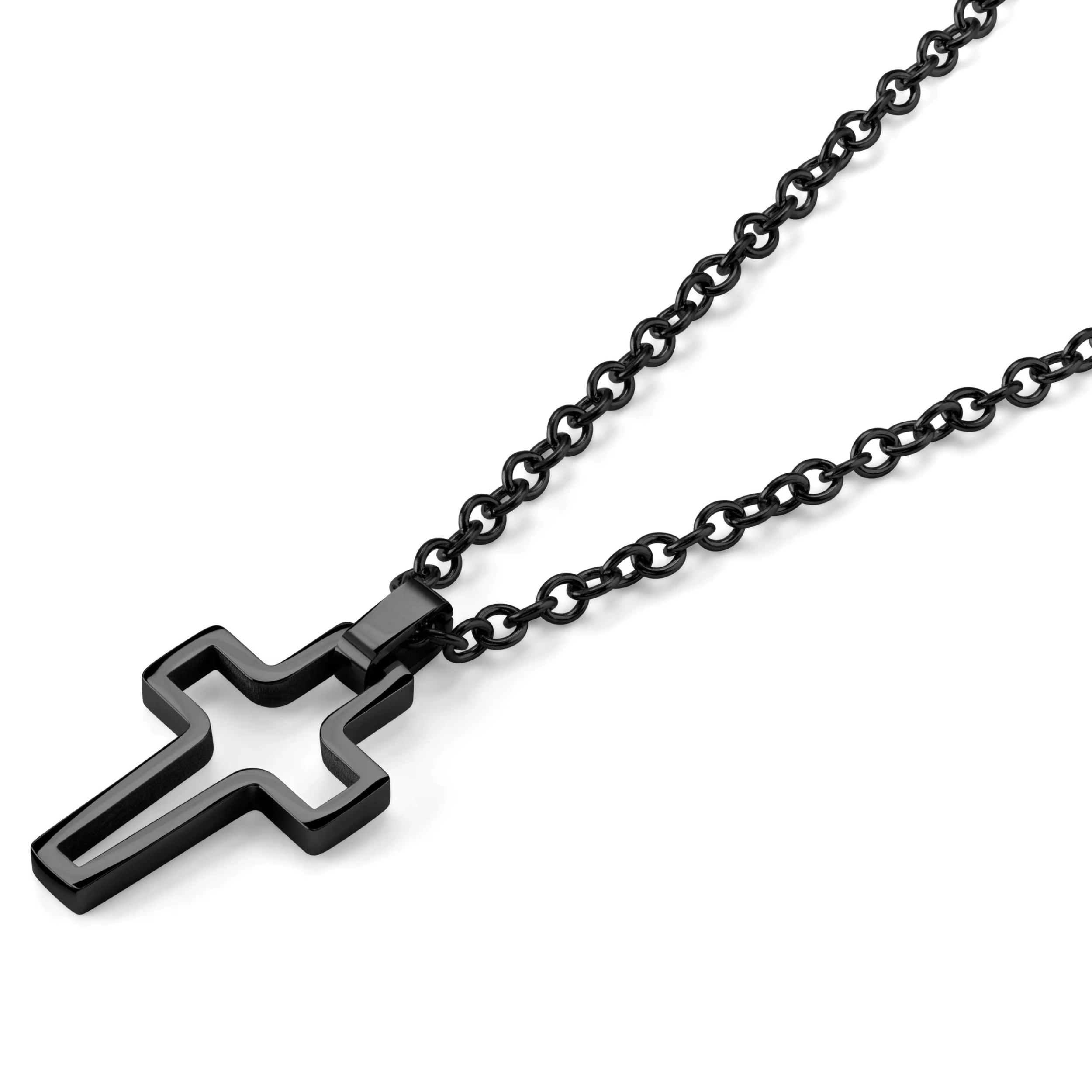 Black Stainless Steel With Hollow Cross Cable Chain Necklace
