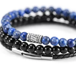 Blue & Black Natural Stone & Leather Bracelet Set