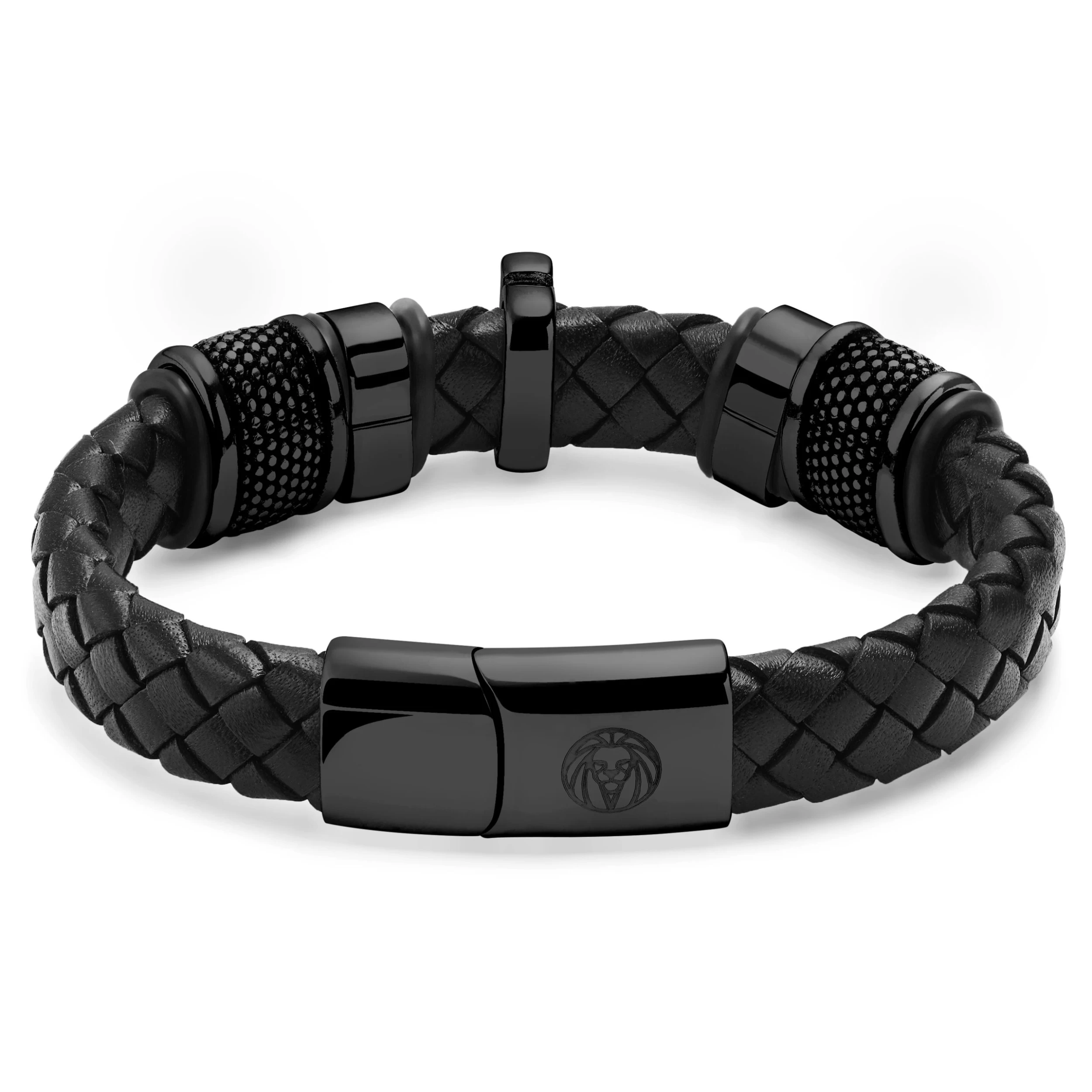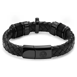Braided Black Stainless Steel Cross Bracelet
