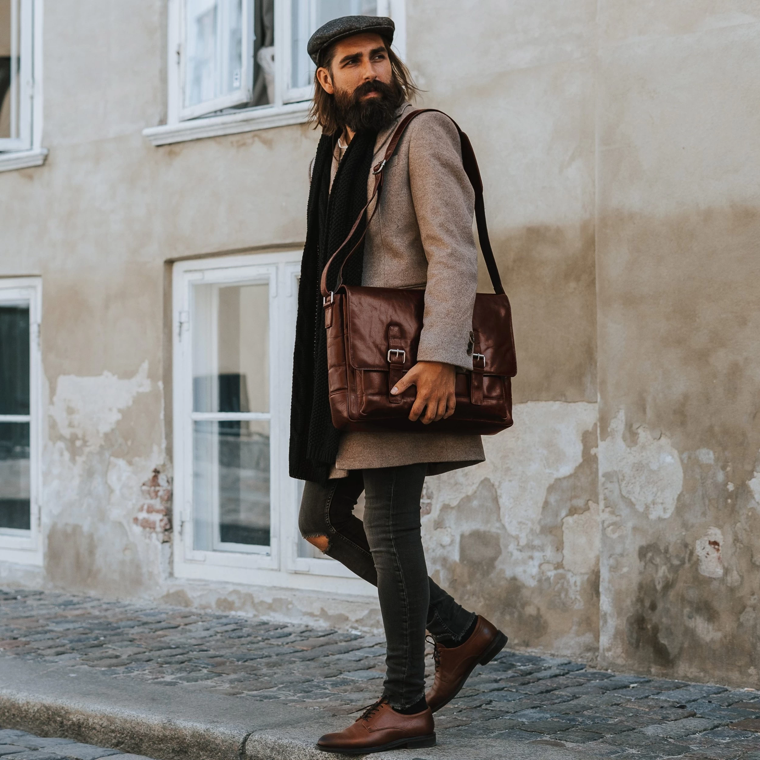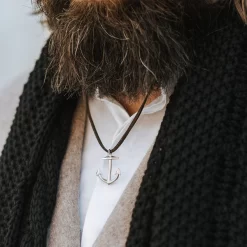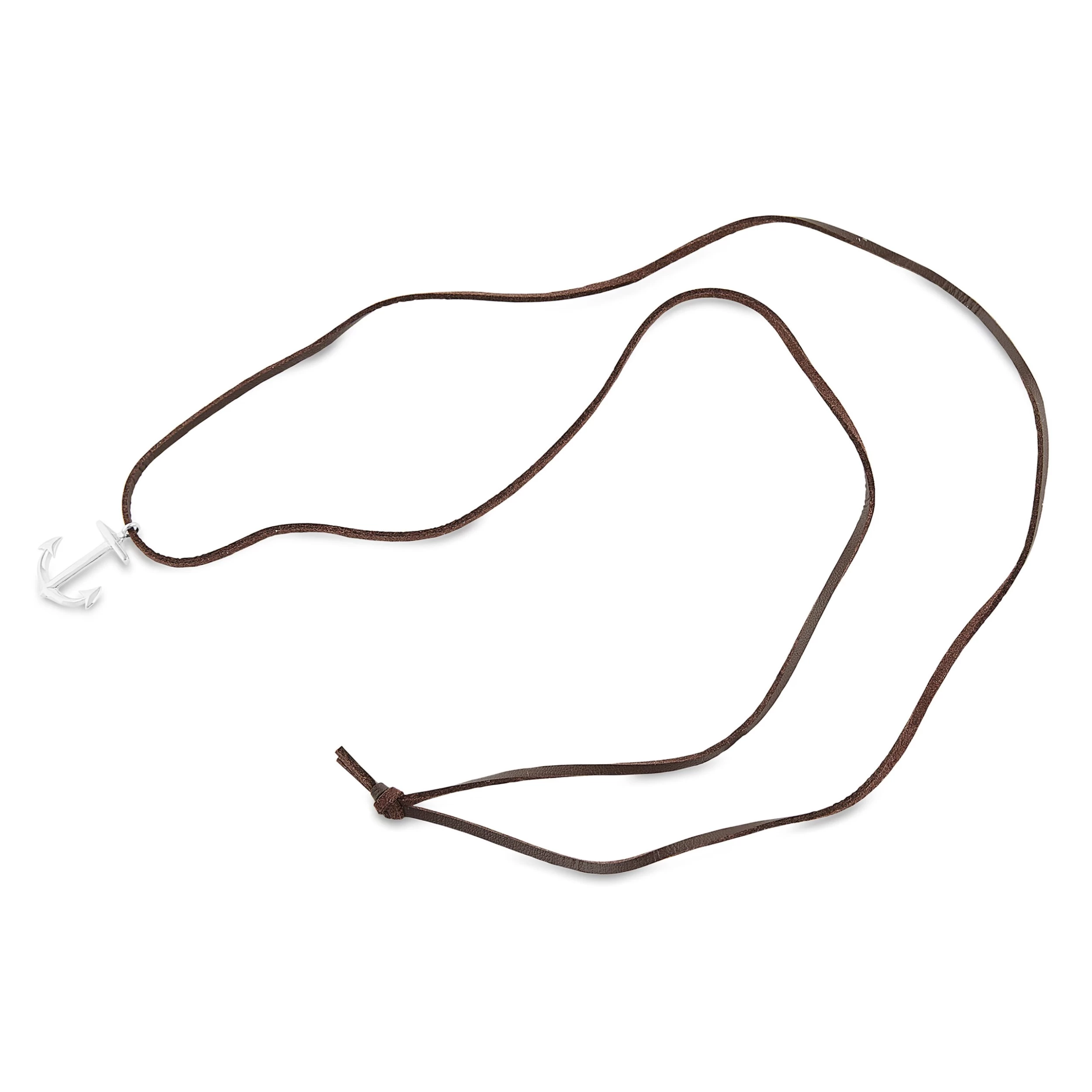 Brown Leather With Silver-Tone Stainless Steel Anchor Necklace