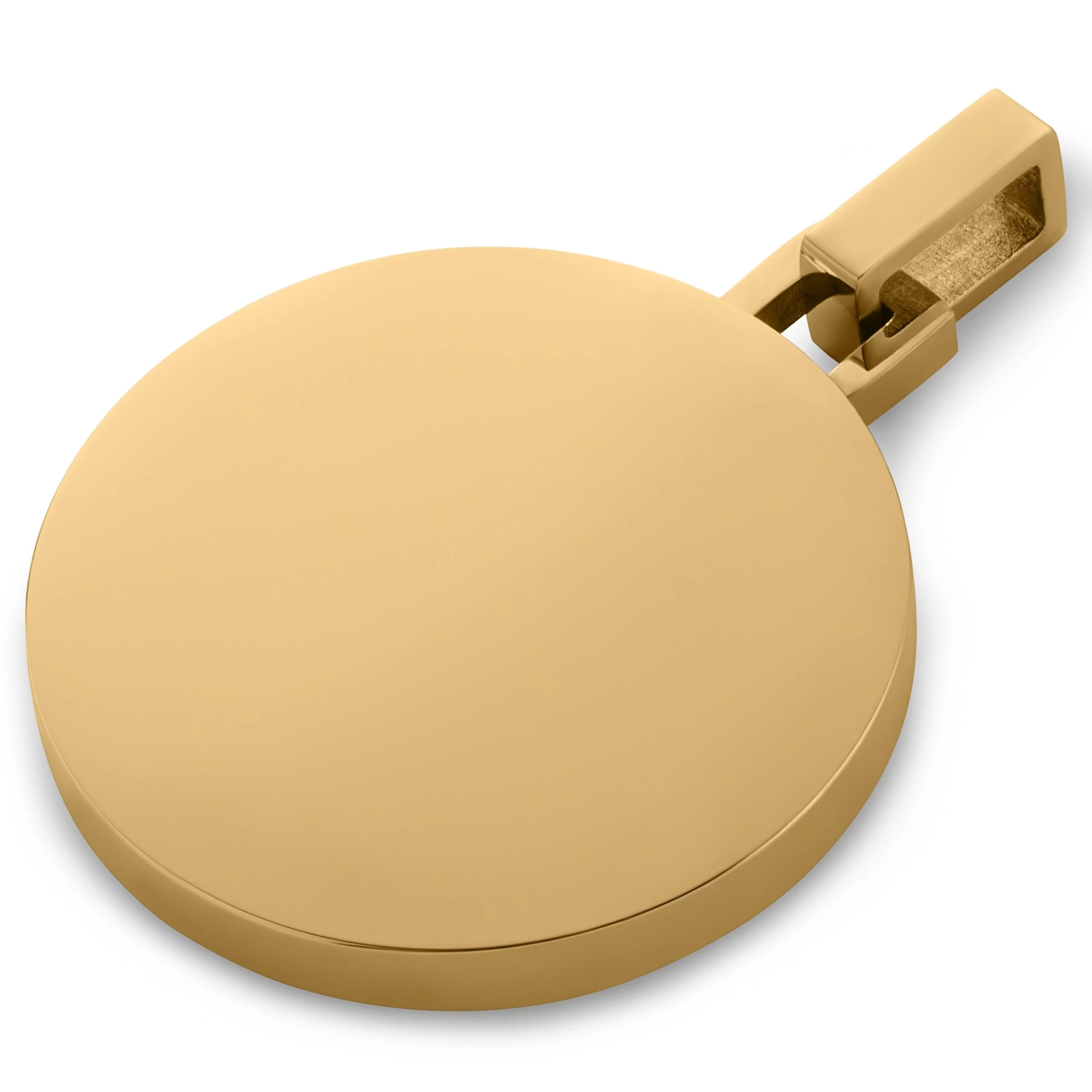 This gold-tone men’s necklace pendant features the ancient evil eye symbol. Different traditions believe wearing this symbol protects against bad luck, injury, and ill will.