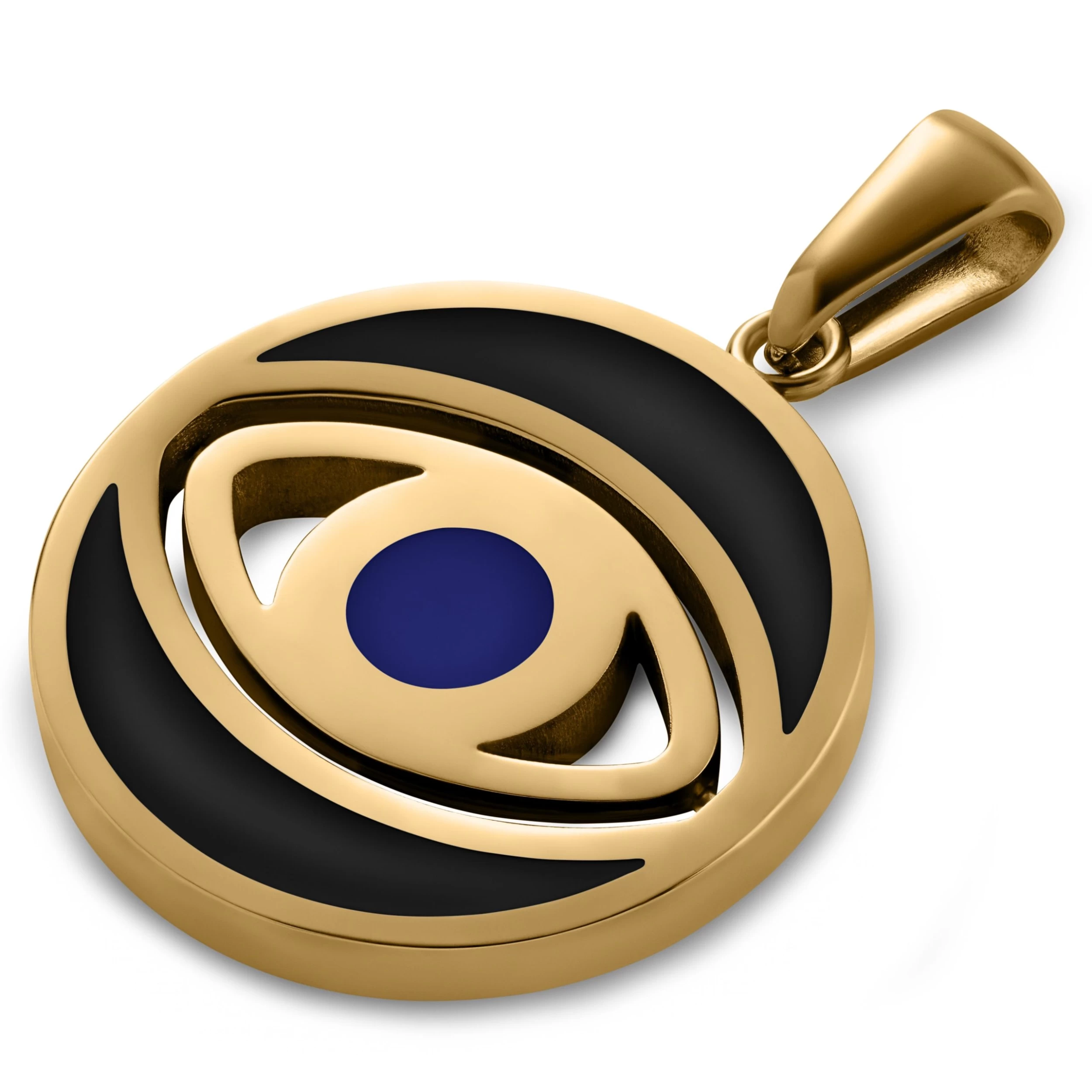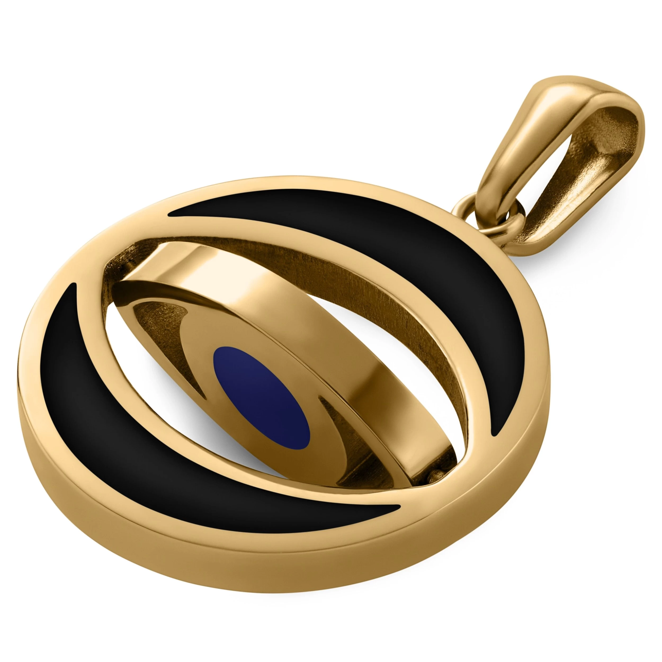 A rotating eye-shaped design sits at the centre of this men’s necklace pendant. The evil eye symbol is featured on both sides, so with every spin, you’ll see the striking blue iris.