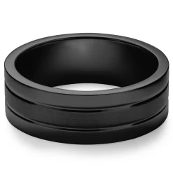 Ferrum | 8 Mm Brushed & Polished Black Stainless Steel Double Grooved Ring
