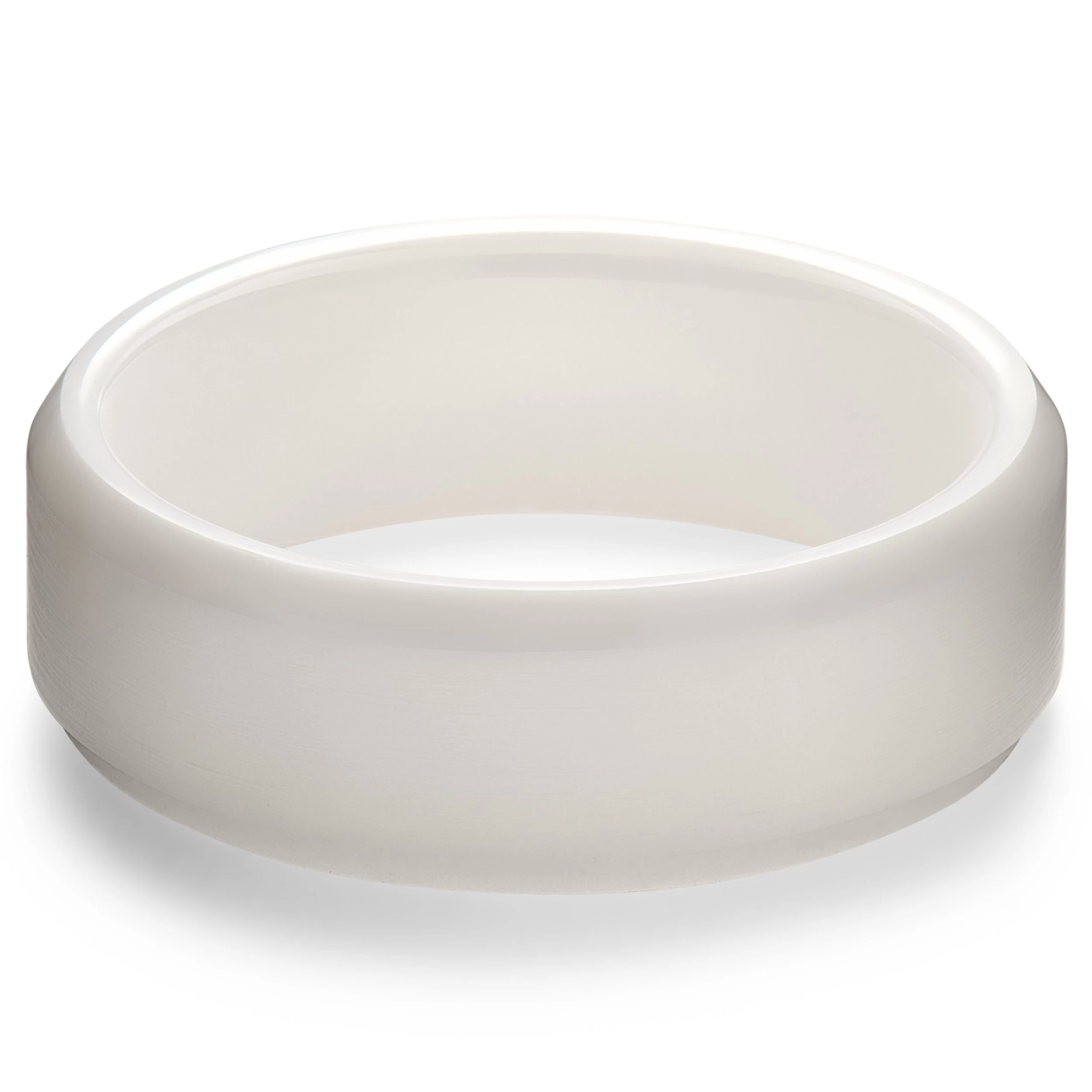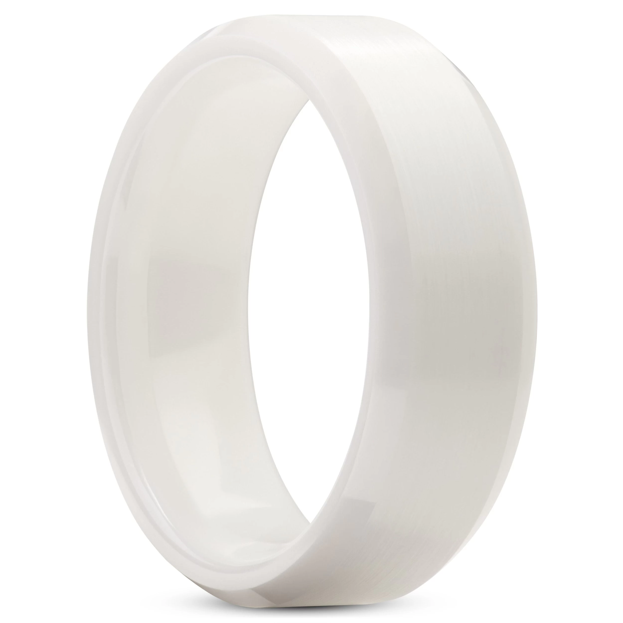 Ferrum | 8 Mm Brushed & Polished White Ceramic Bevelled Edge Ring