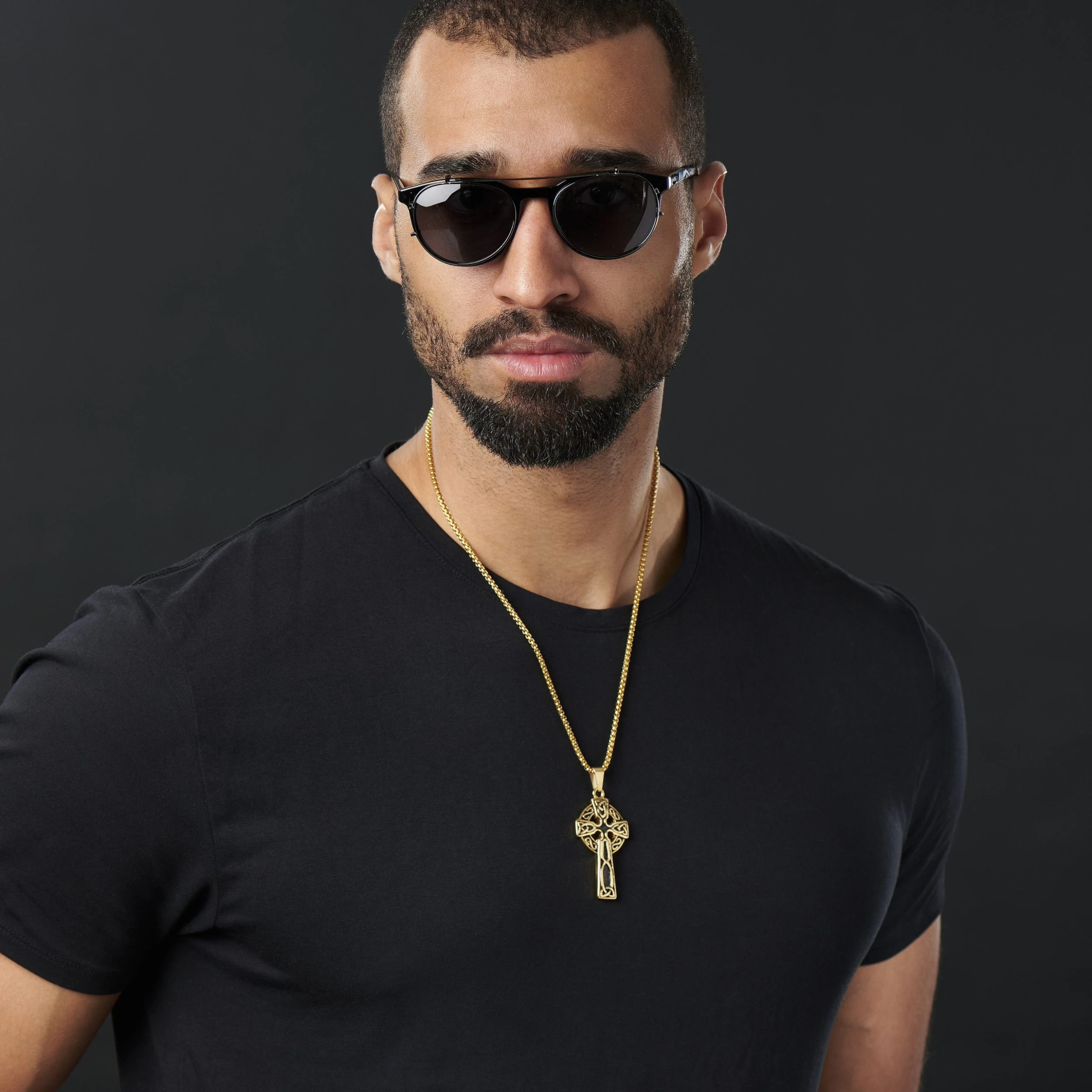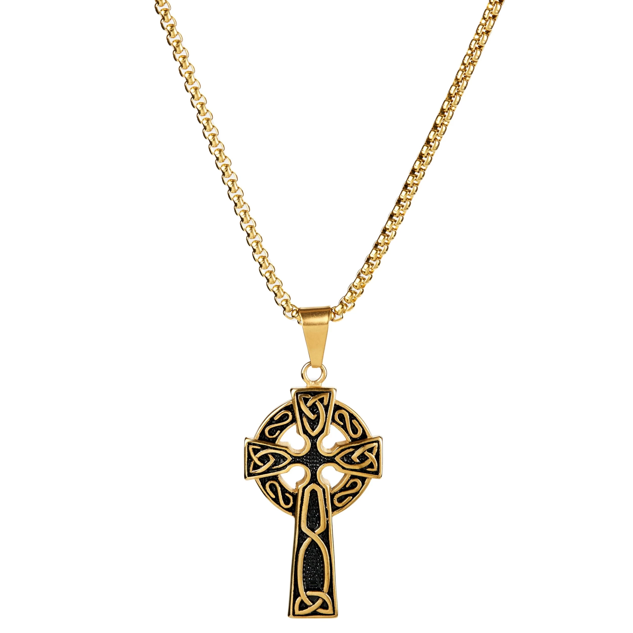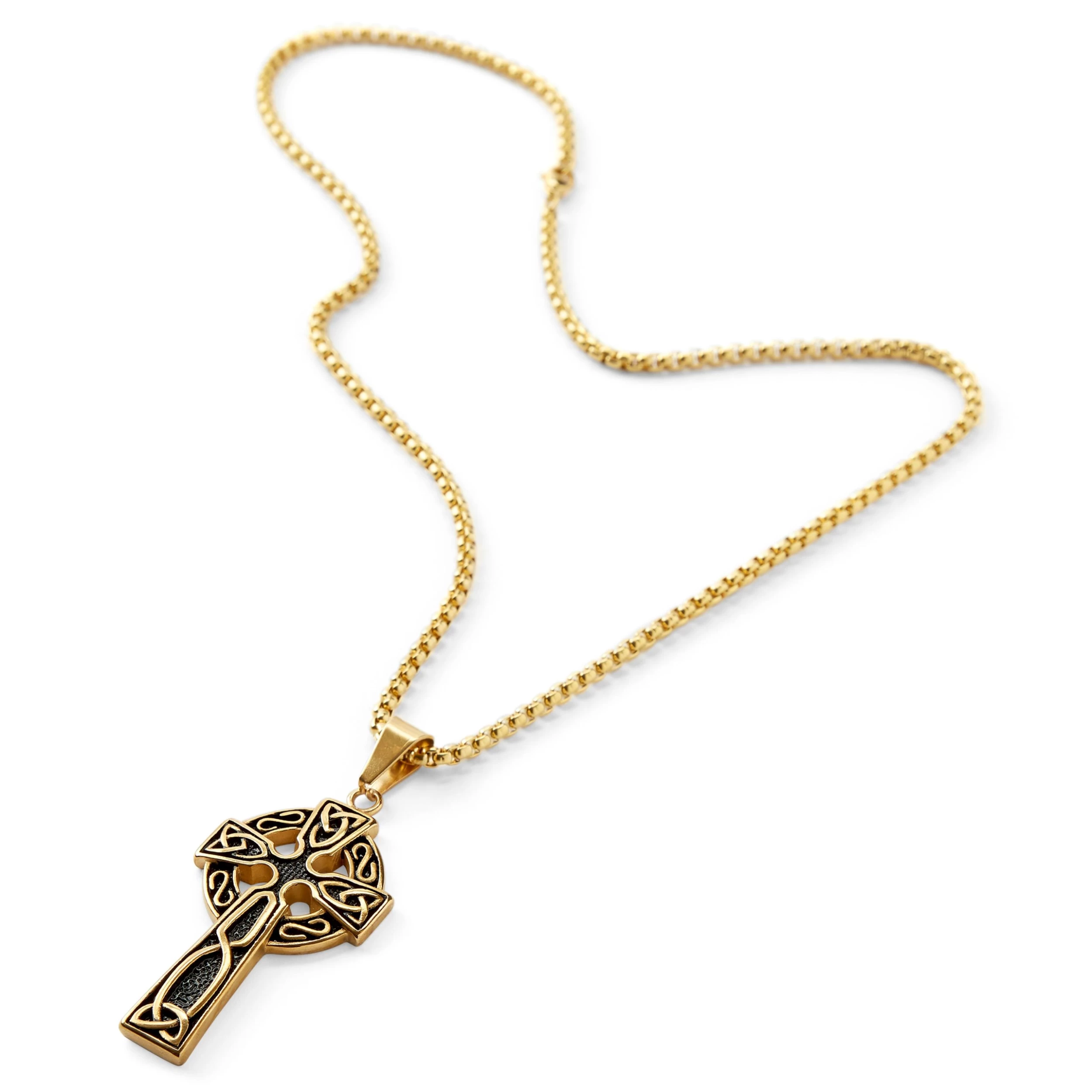 Gold-Tone Celtic Cross Cable Chain Necklace