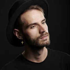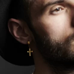This lightweight gold-tone men’s earring is small enough for everyday wear and eye-catching enough to start a conversation.