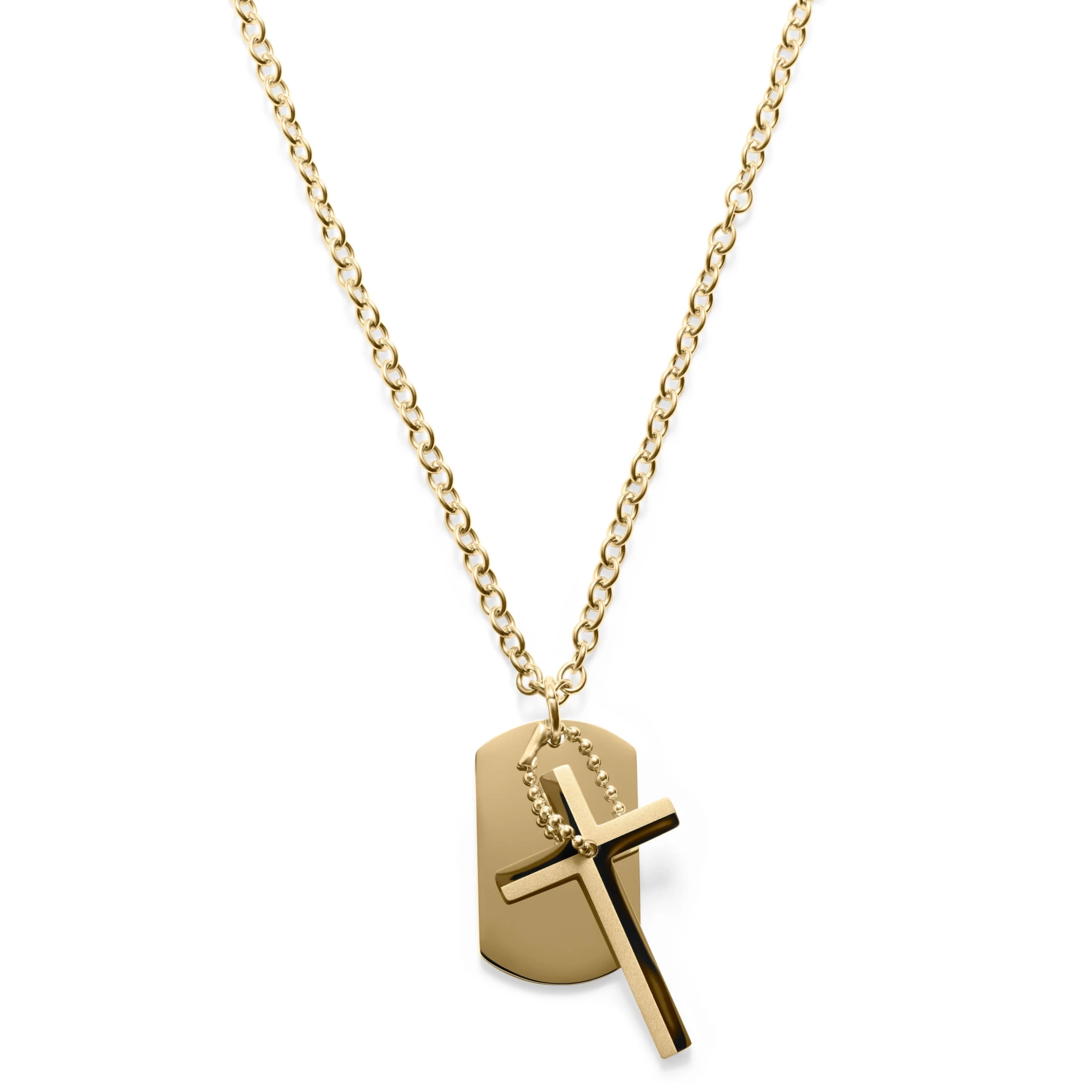 Gold-Tone Dog Tag & Cross Cable Chain Necklace
