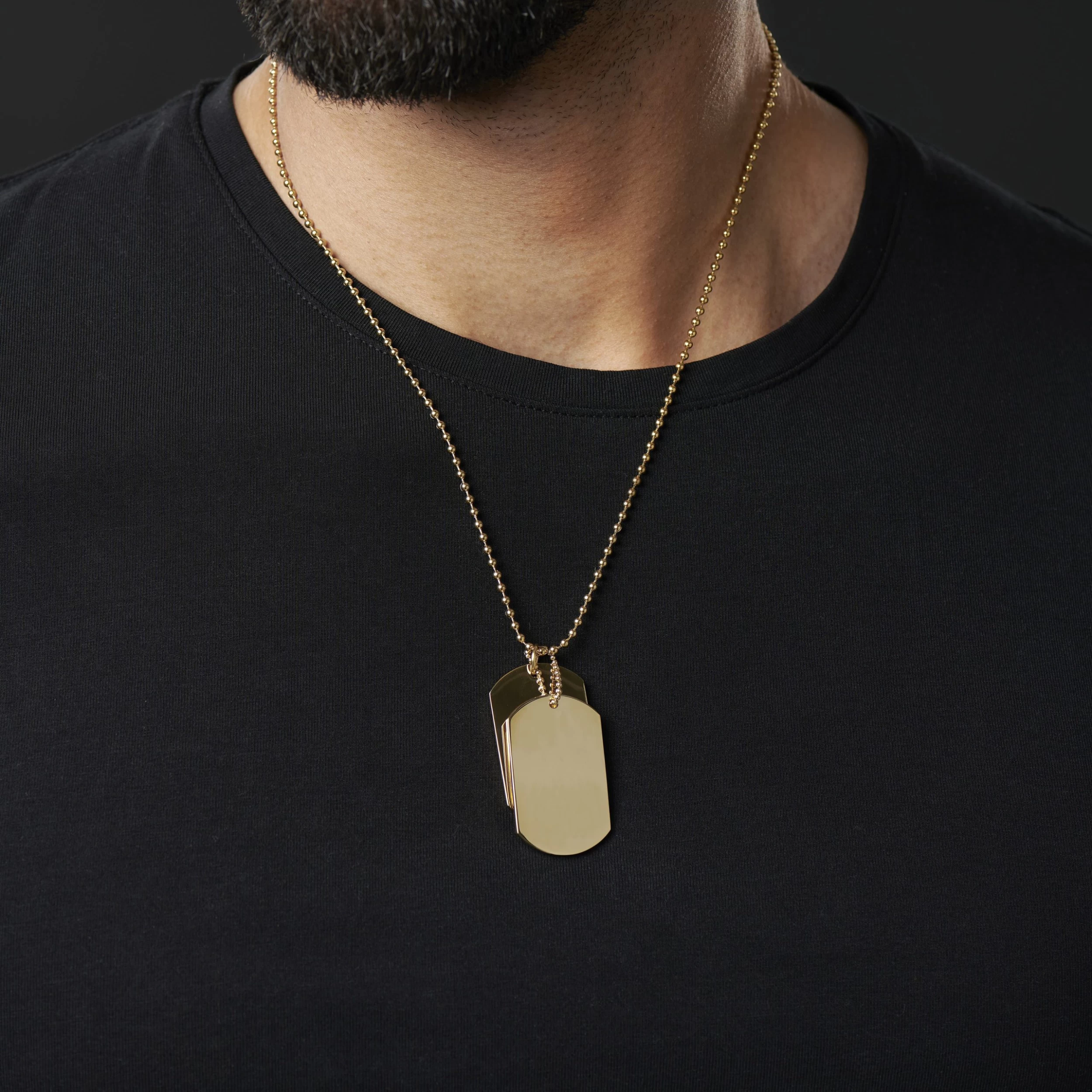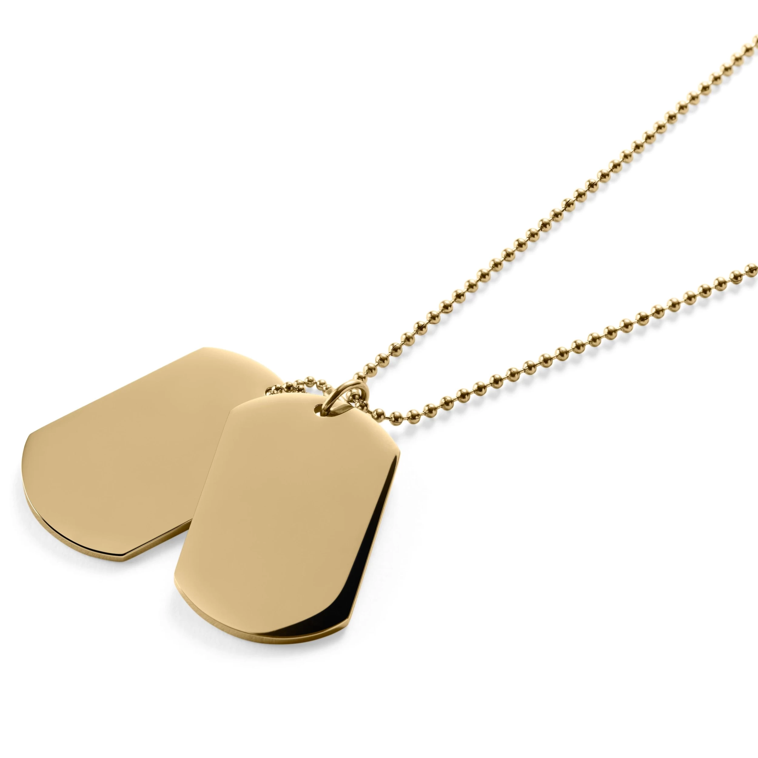 Gold-Tone With Double Dog Tag Ball Chain Necklace