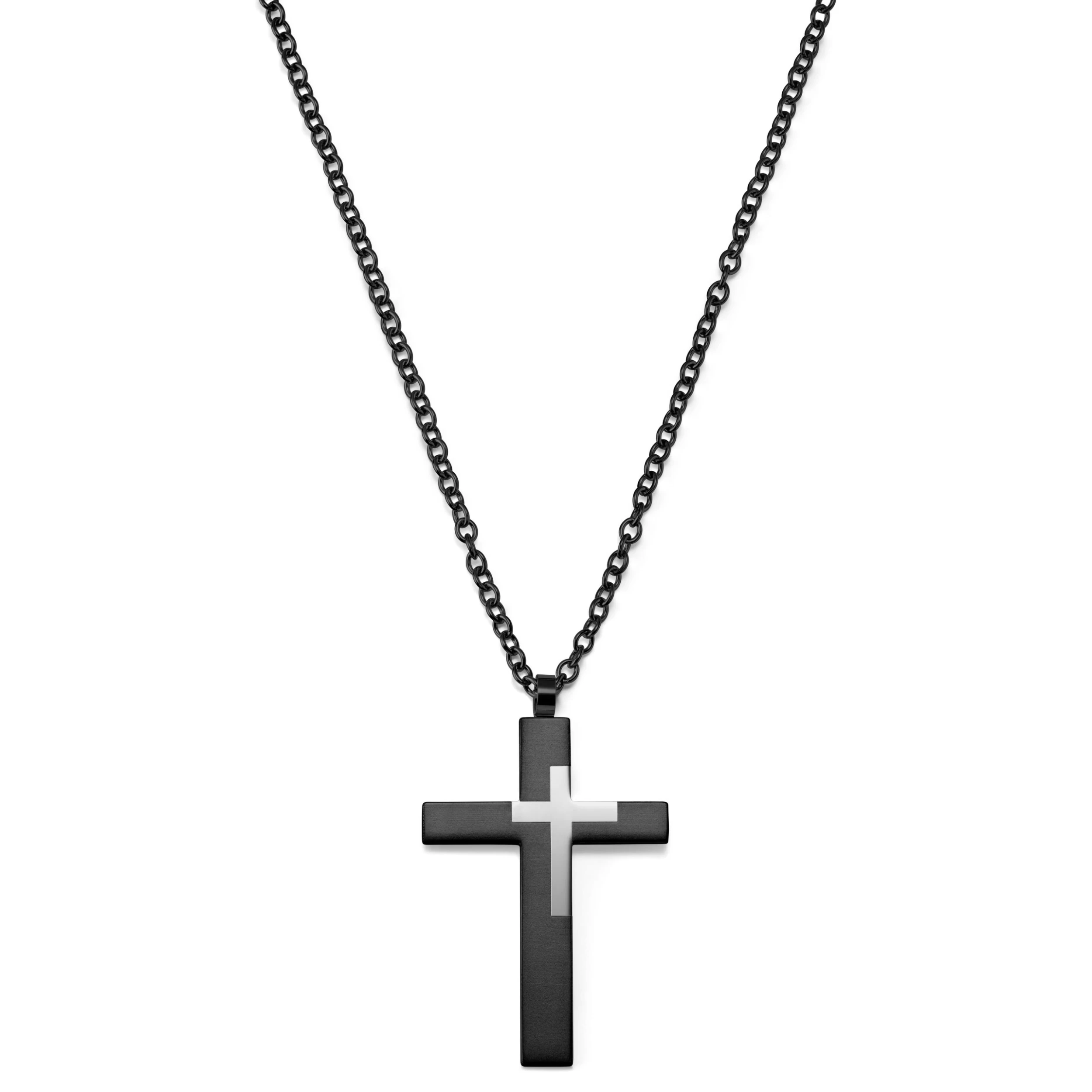 Gunmetal & Silver-Tone Stainless Steel Cross Cable Chain Necklace