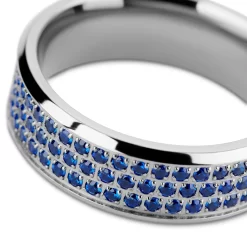 Hyperan | 1/3″ (8 Mm) Silver-tone Blue Zirconia Titanium Ring