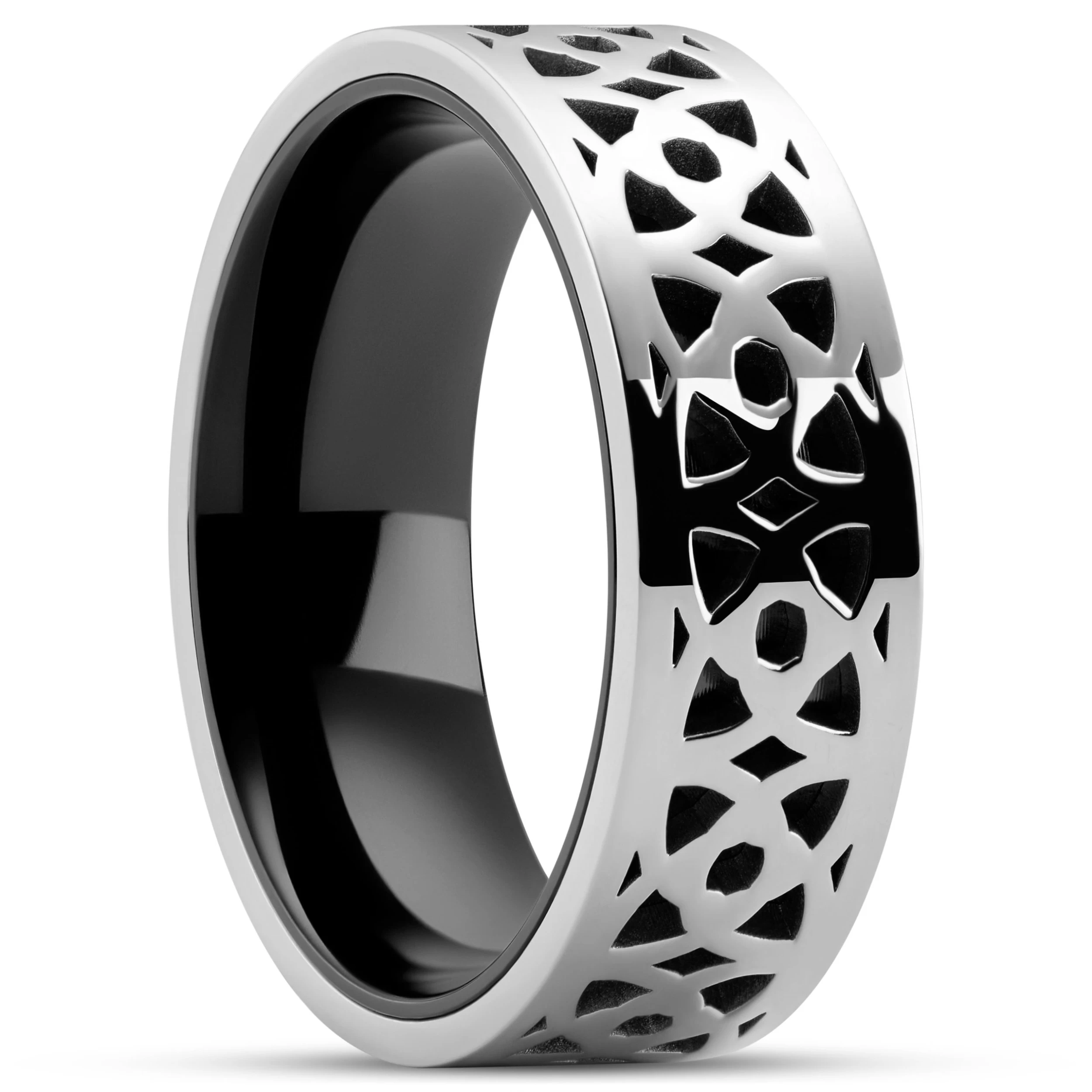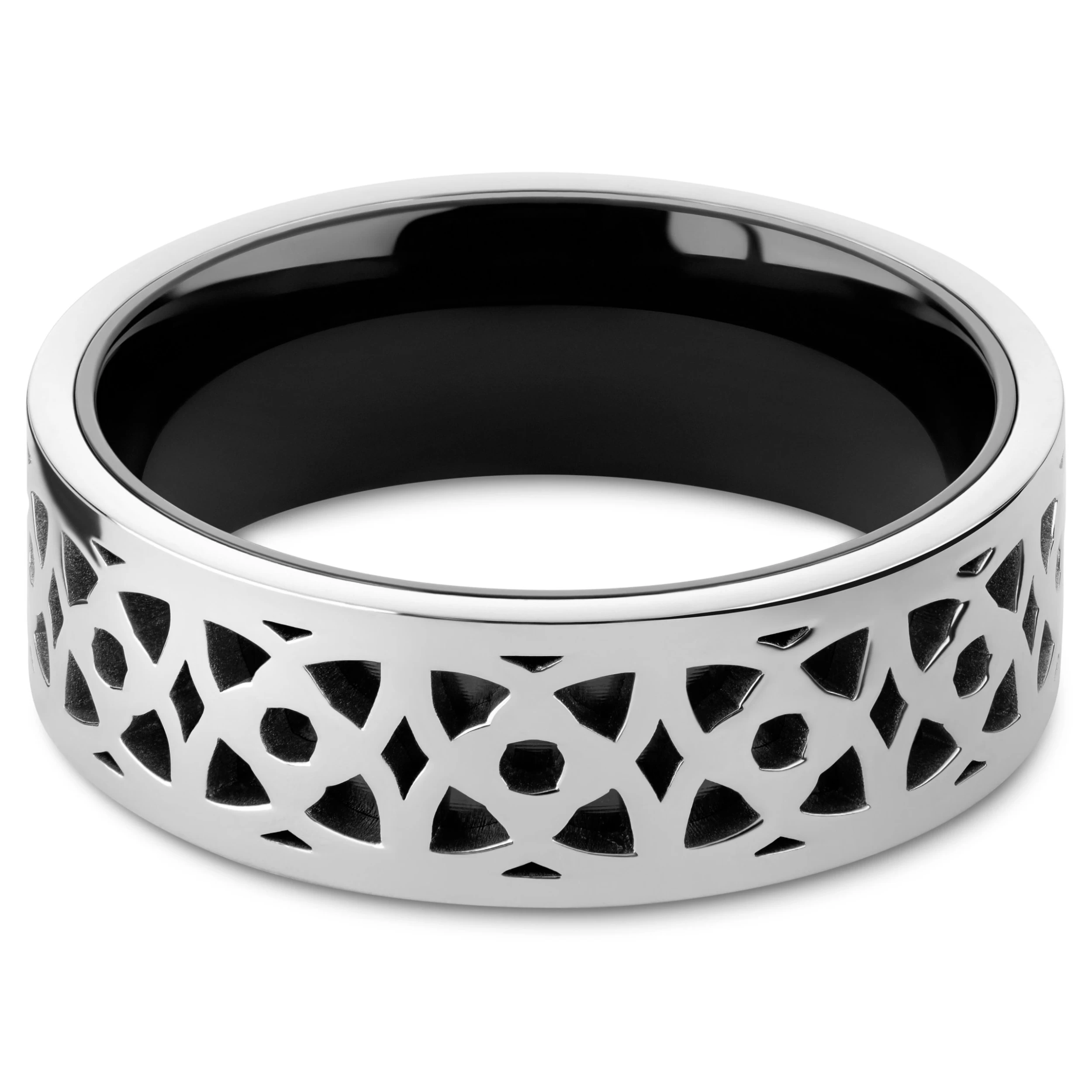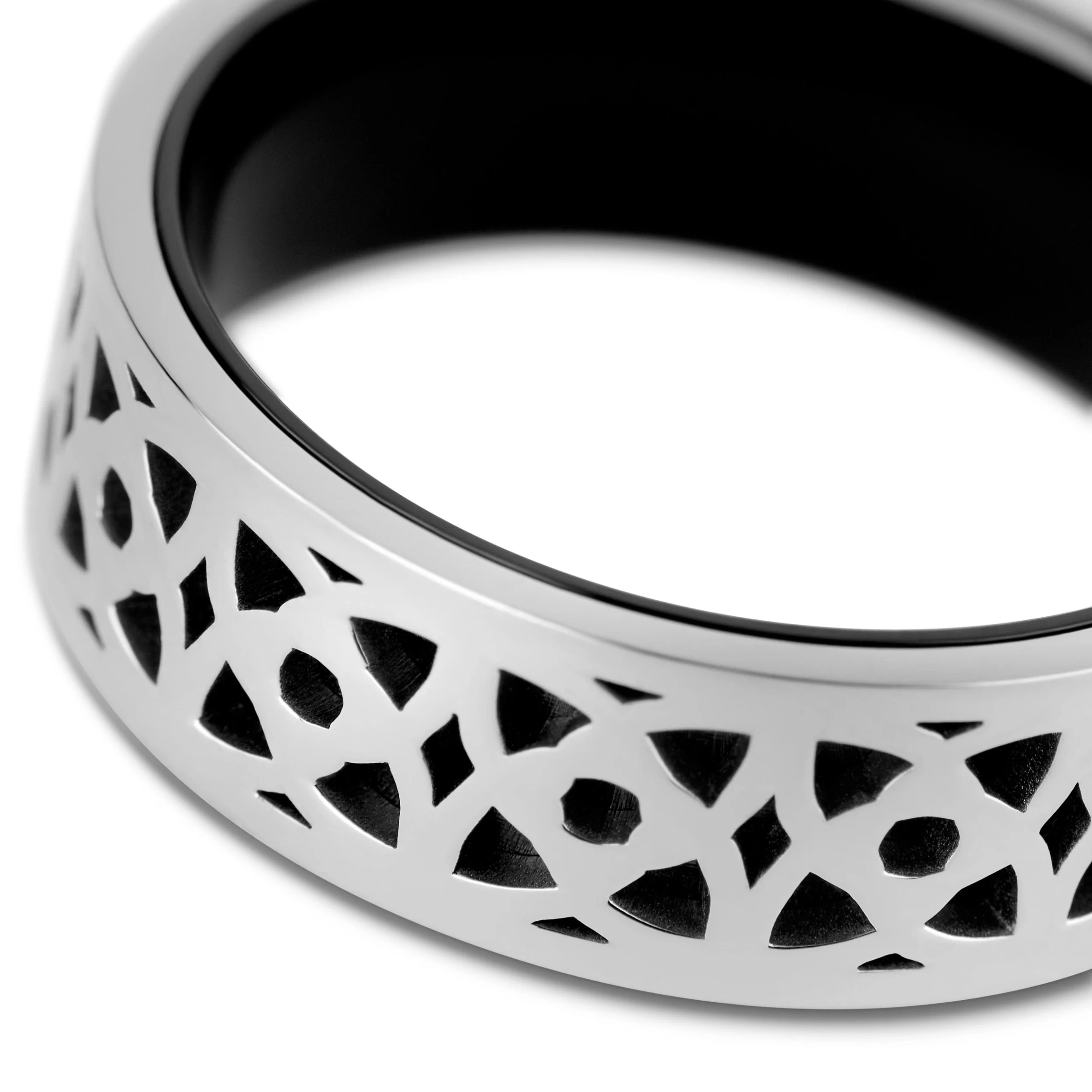 Hyperan | 1/3″ (8 Mm) Silver-tone Titanium Patterned Ring