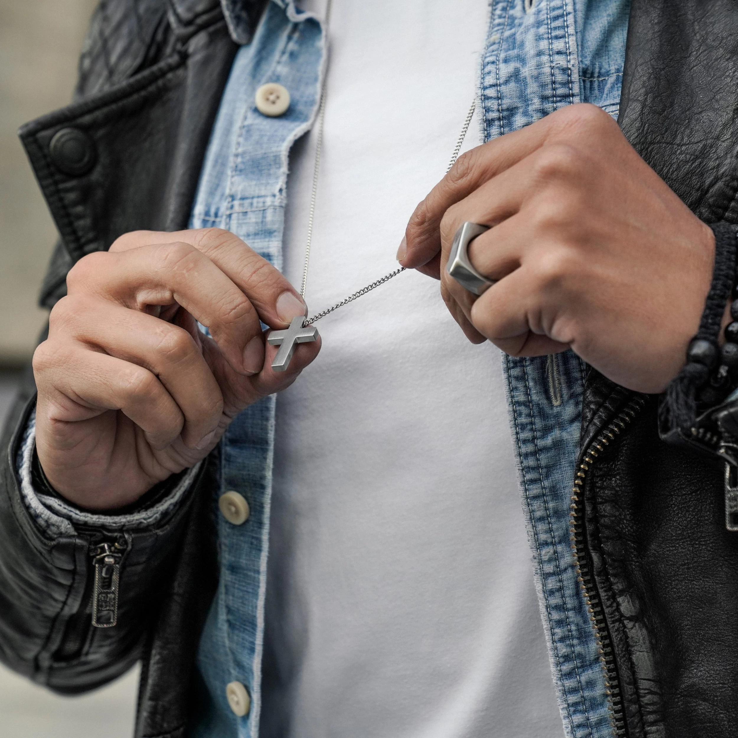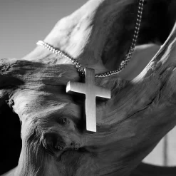 Iconic | Silver-Tone Stainless Steel Cross Curb Chain Necklace