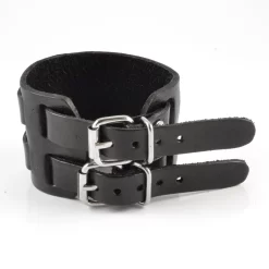 Simple Black Double Locked Leather Cuff Bracelet