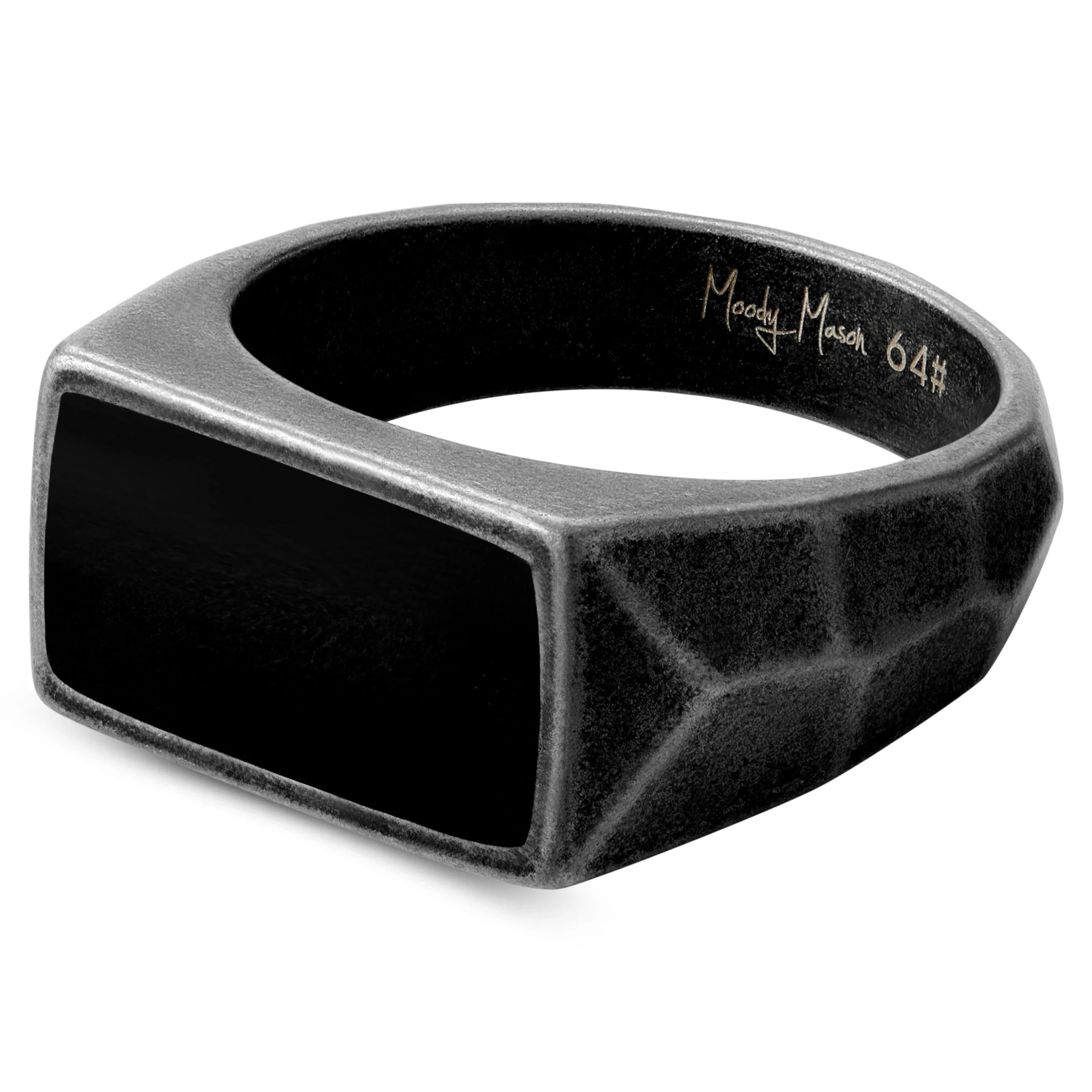 Jax | Black & Dark Gray Stainless Steel With Black Enamel Signet Ring