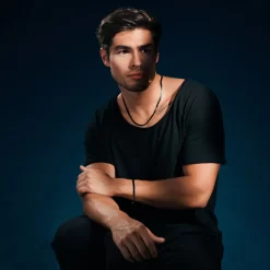The perfect necklace length is subjective. The sketch is of a 6’2″, medium-build model with a 14 1/2” (37 cm) neck. For most men, a 19 3/4” (50 cm) necklace is standard. But men aren’t ‘standard’.
