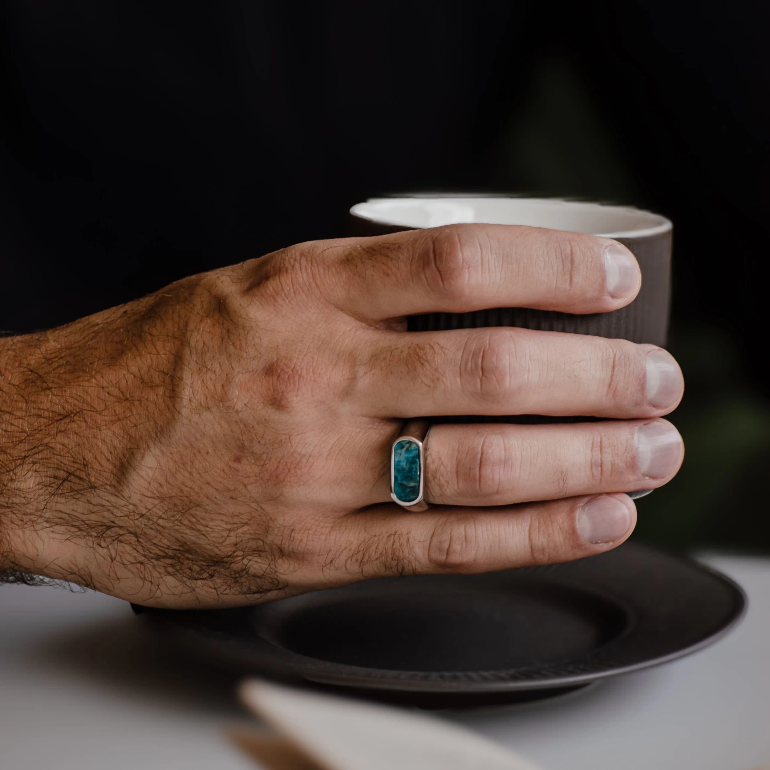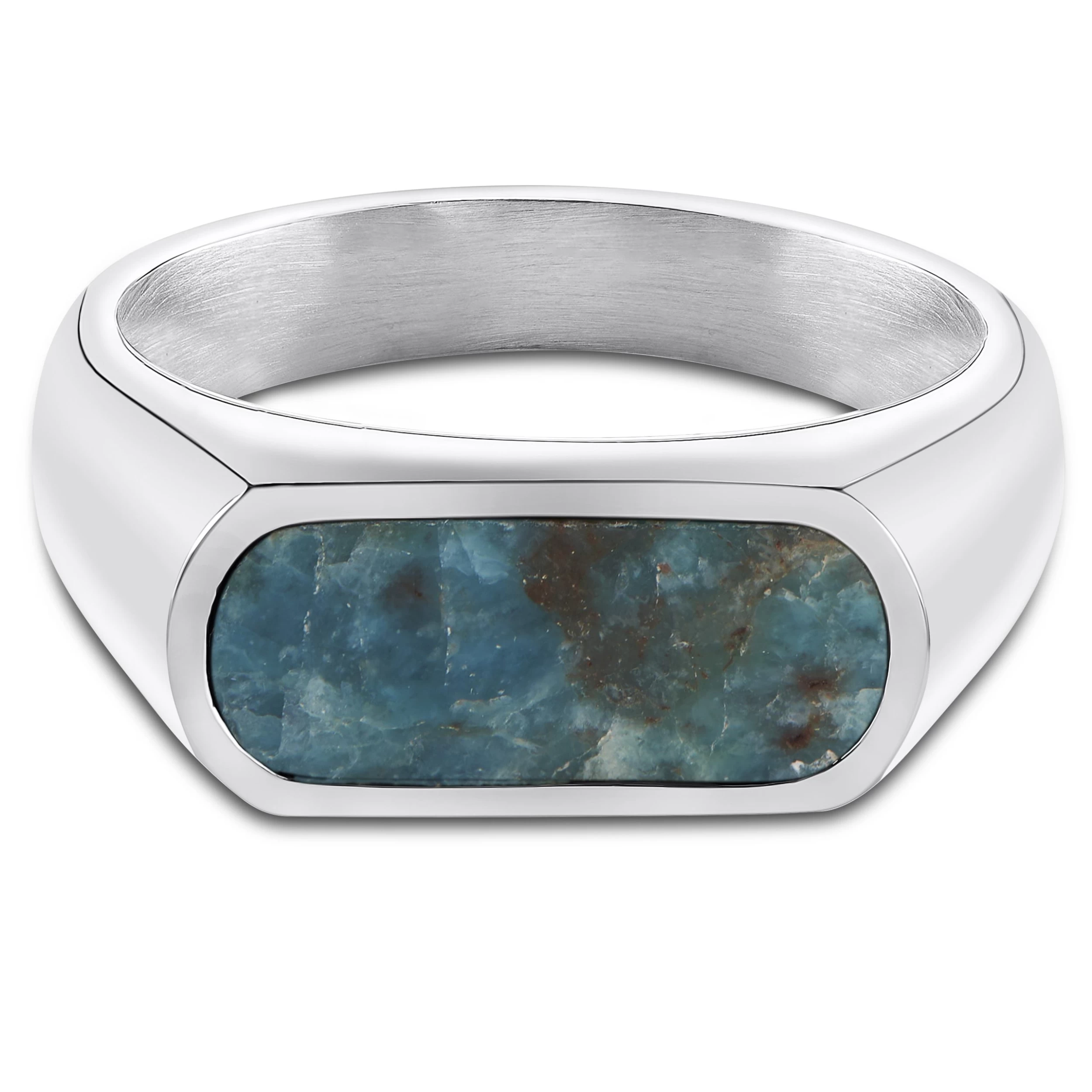 Orisun | Silver-Tone Stainless Steel Larimar Stone Signet Ring
