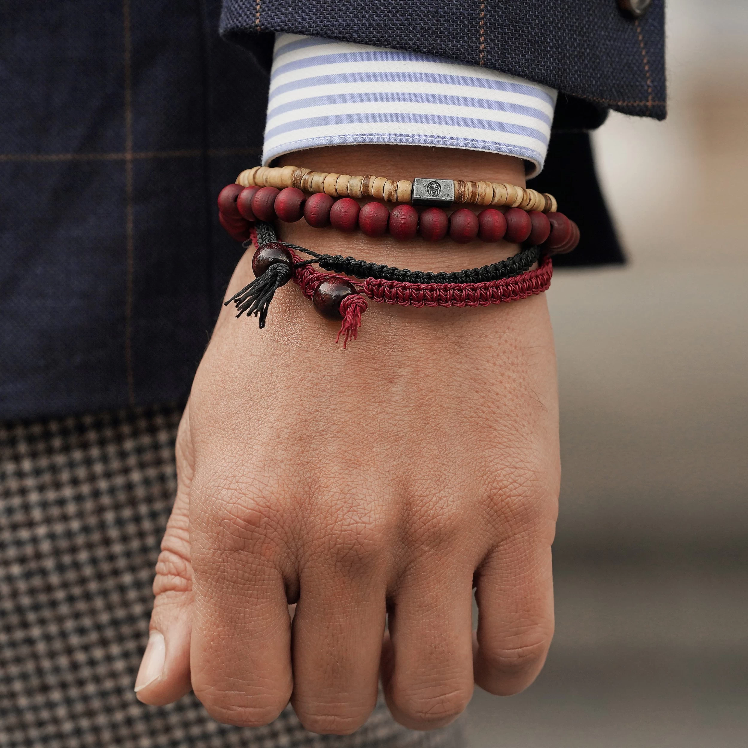 Red, Brown & Black With Wood, Coconut & Cotton Bracelet Set