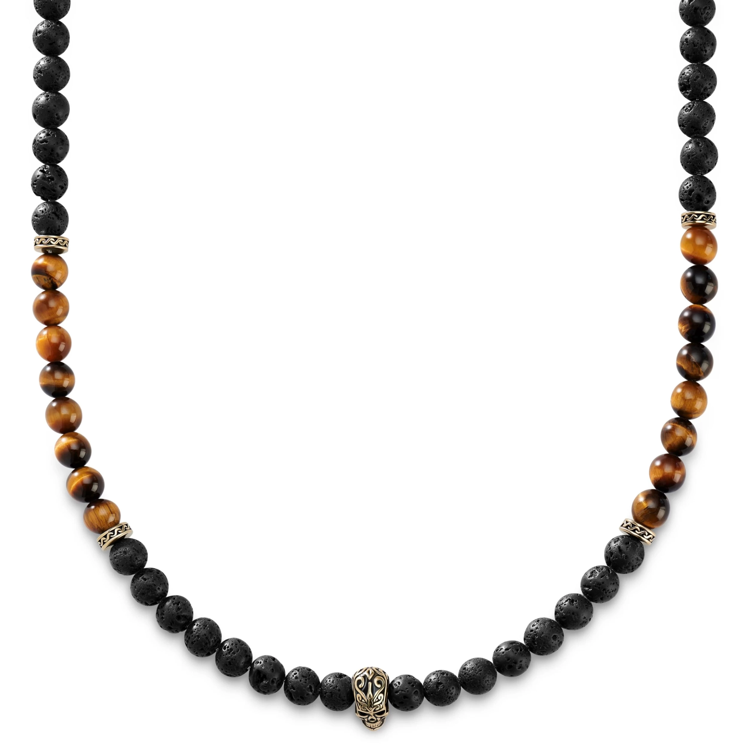 Rico | Black Lava & Yellow Tiger’s Eye Skull Necklace