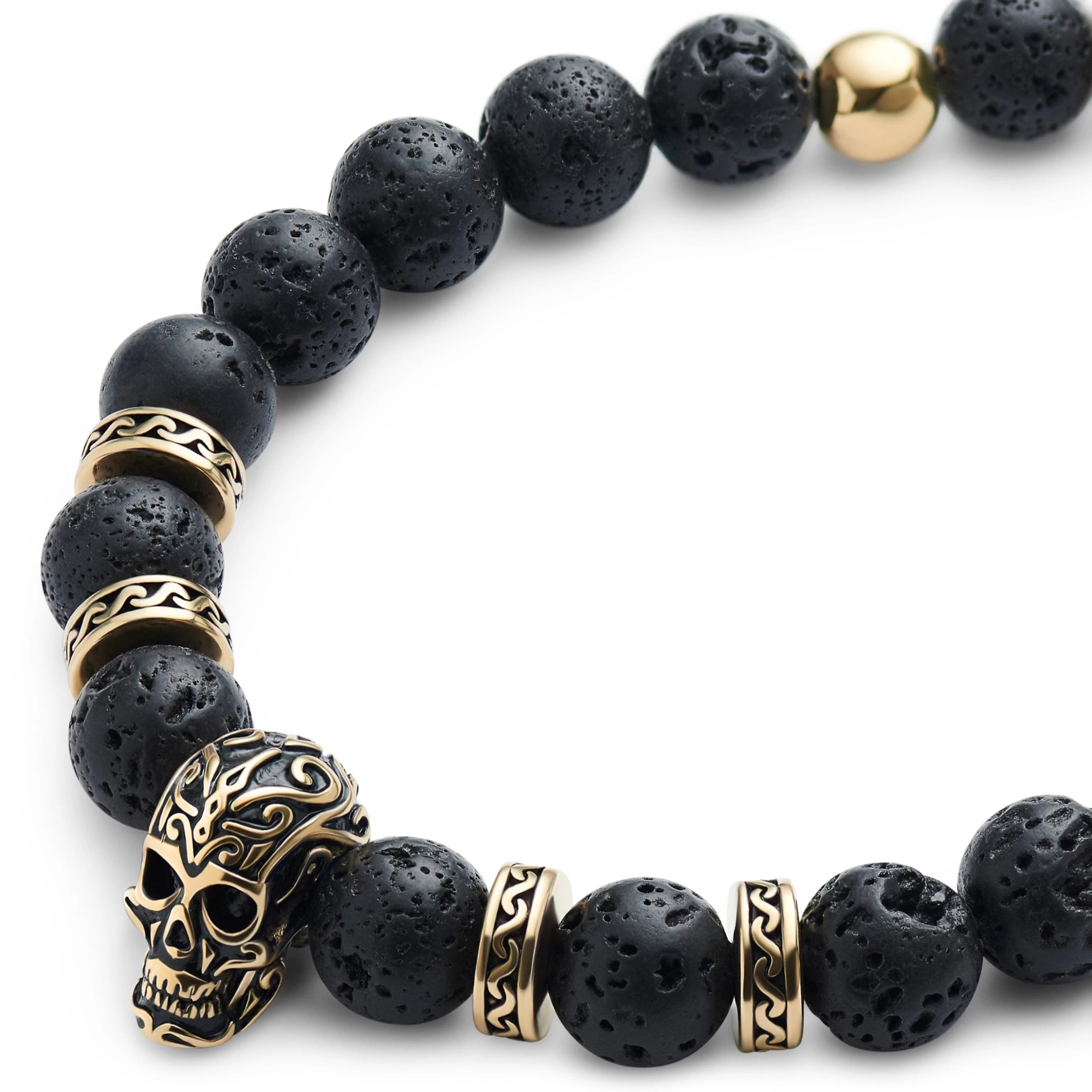 Rico | Lava Stone & Gold-Tone Stainless Steel Skull Bracelet