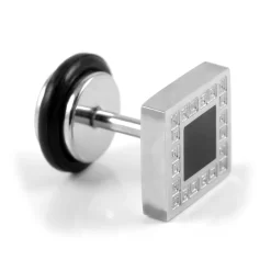 This square earring for men features an eye-catching Aztec design. The black center is surrounded by bright polished steel.