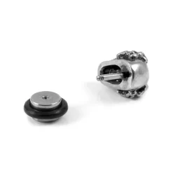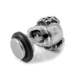 Brave enough to boast the image of death on your ear? This men’s stud earring features a bold skull – polished to a shine. Fastens with a secure screw-back closure.