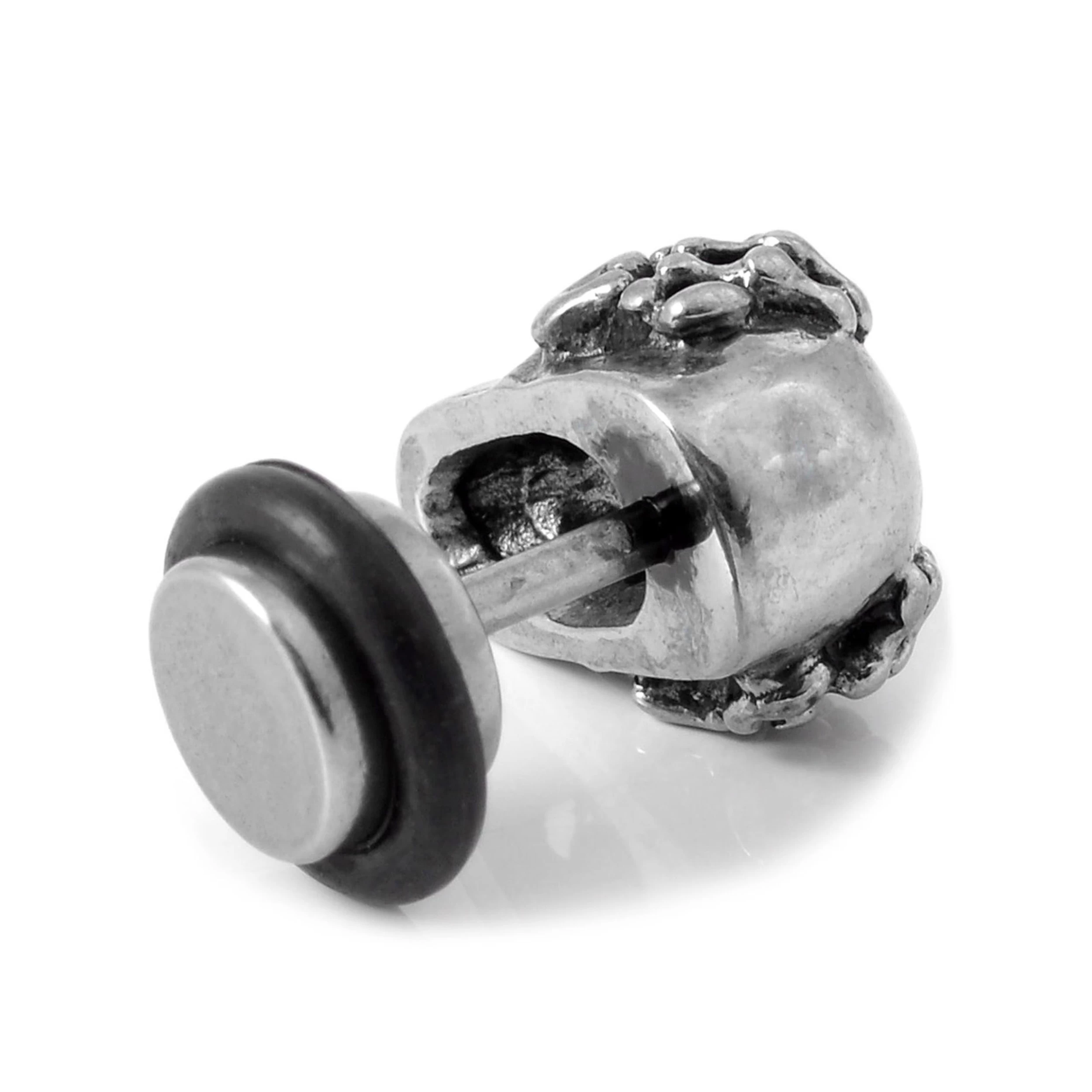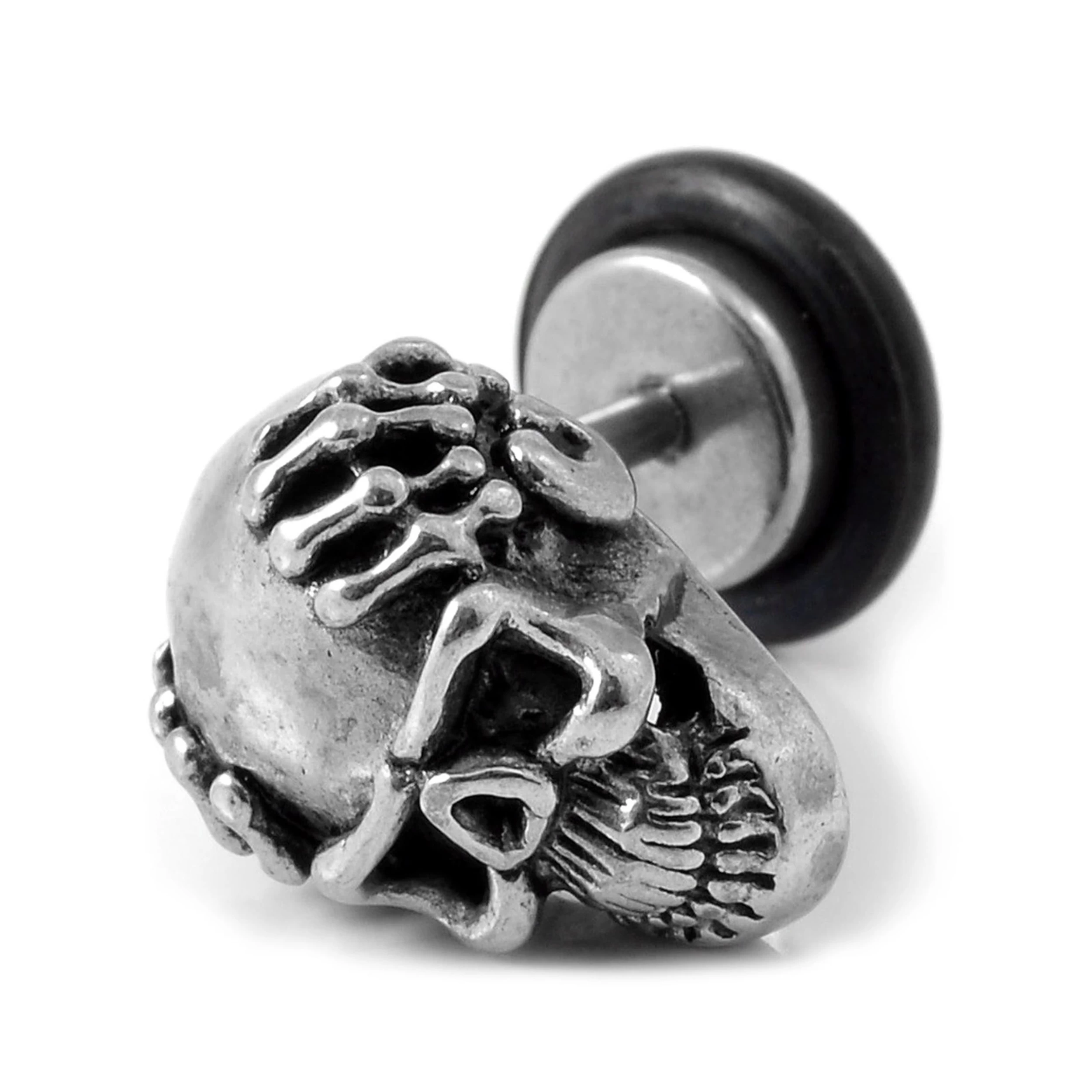Satago | 1/3″ (9 Mm) Black And White Acrylic & Stainless Steel Skull Faux Plug Stud Earring