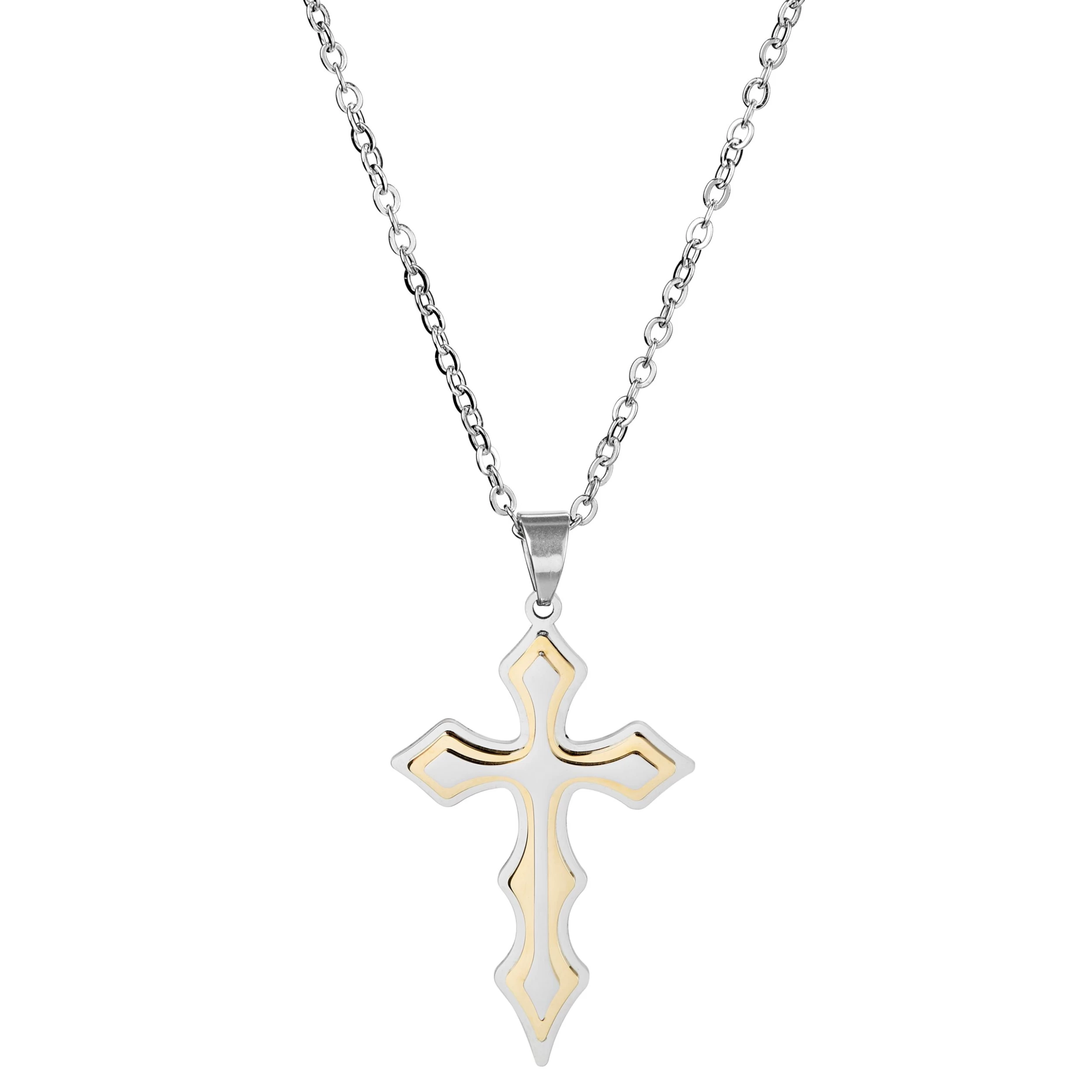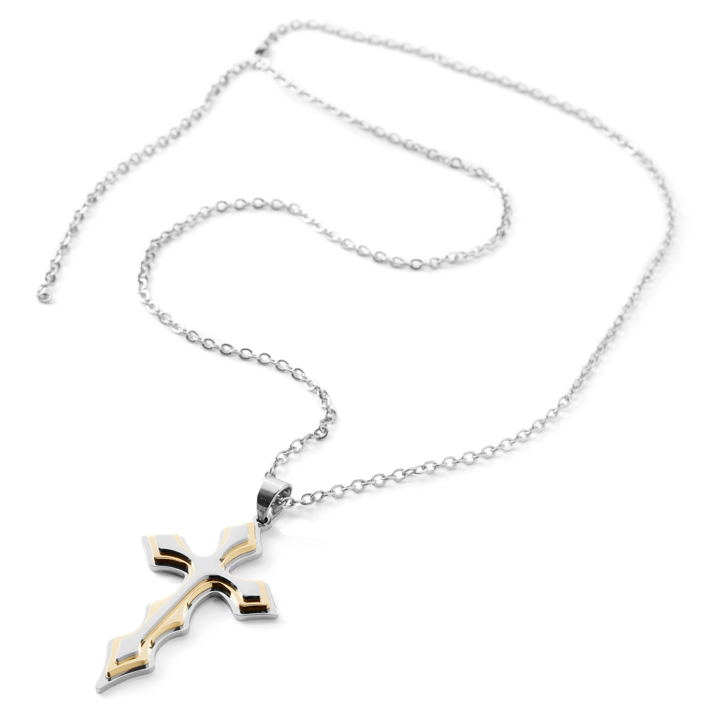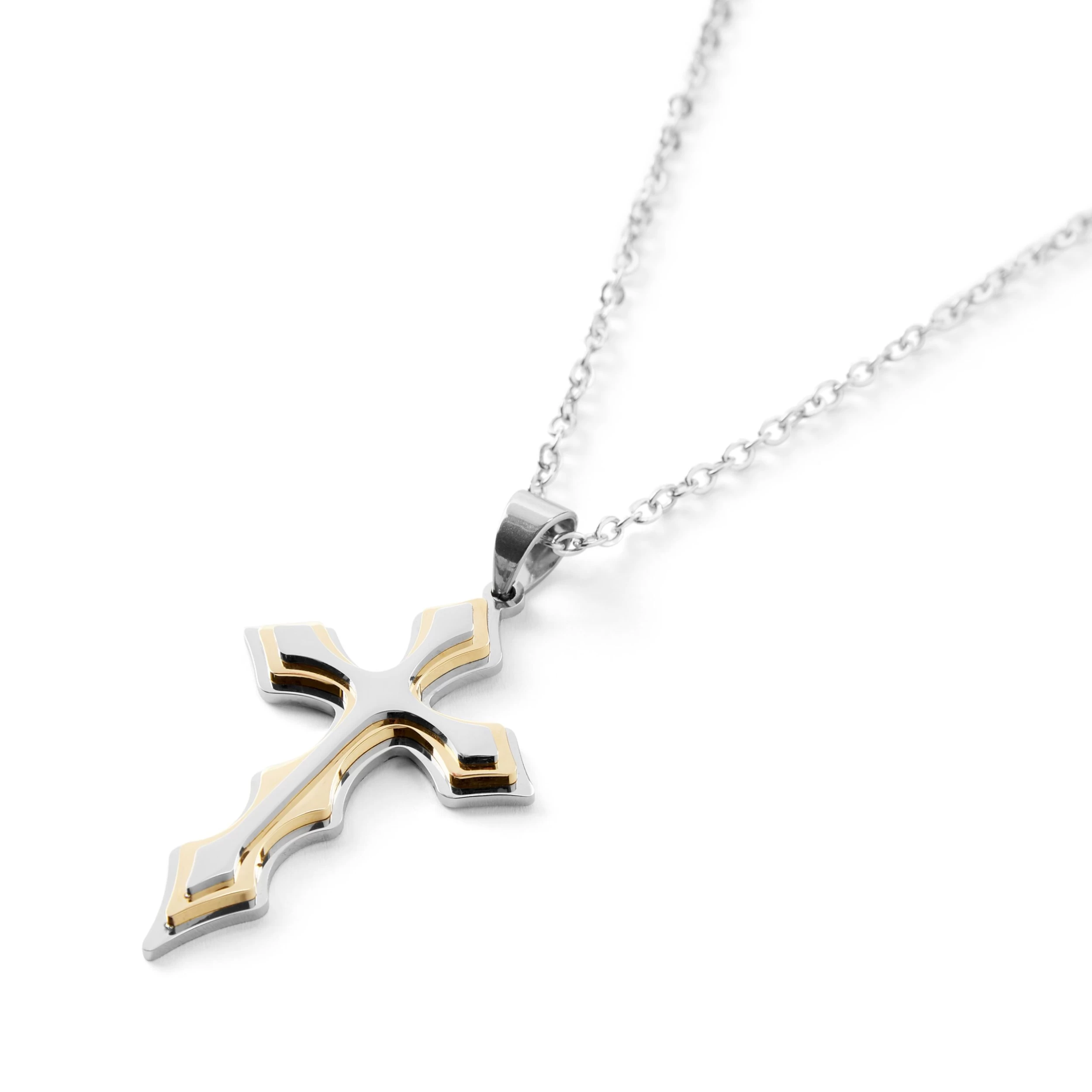 Silver- & Gold-Tone Stainless Steel Layered Cross Cable Chain Necklace